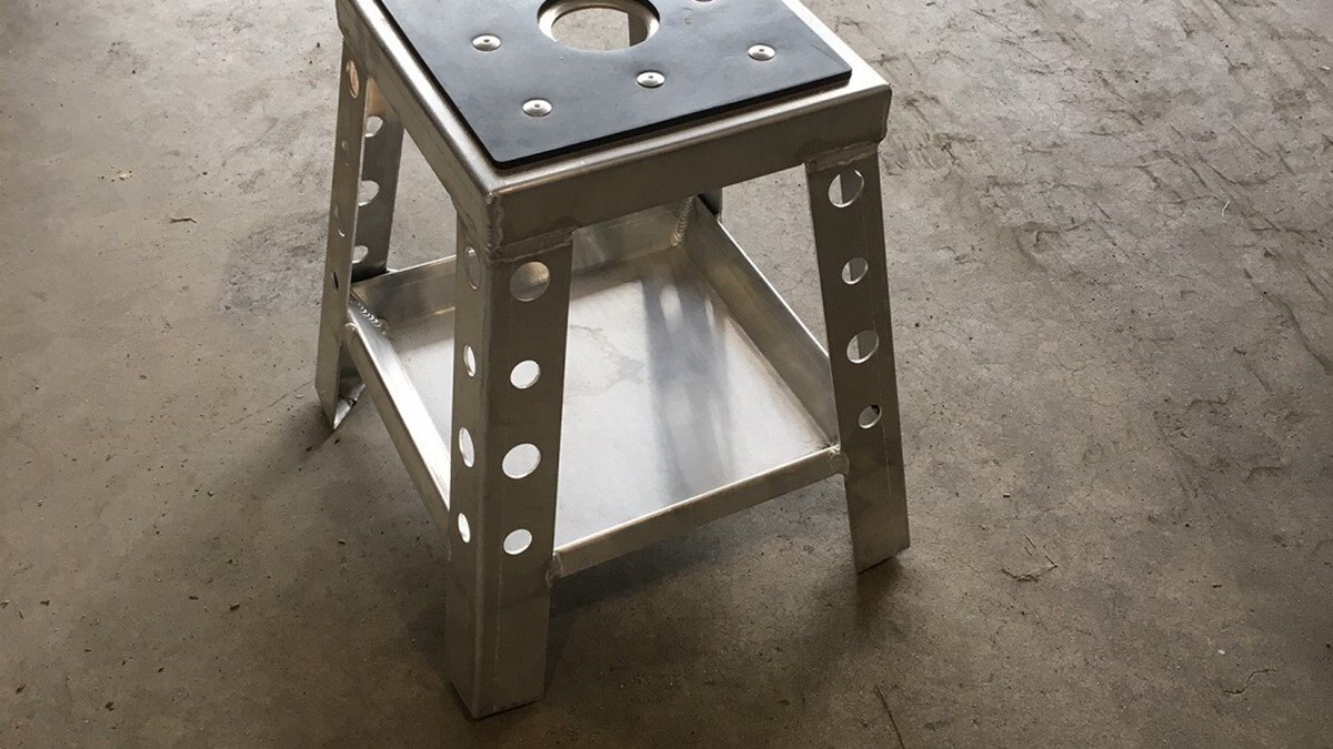 This aluminum bike stand with tool pan gives you the ability to place tools, nuts, bolts & other parts in the tray below while you are working on you bike.