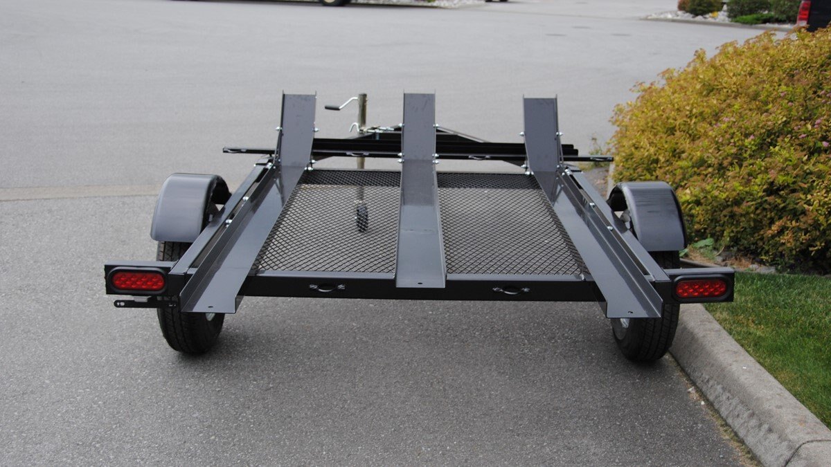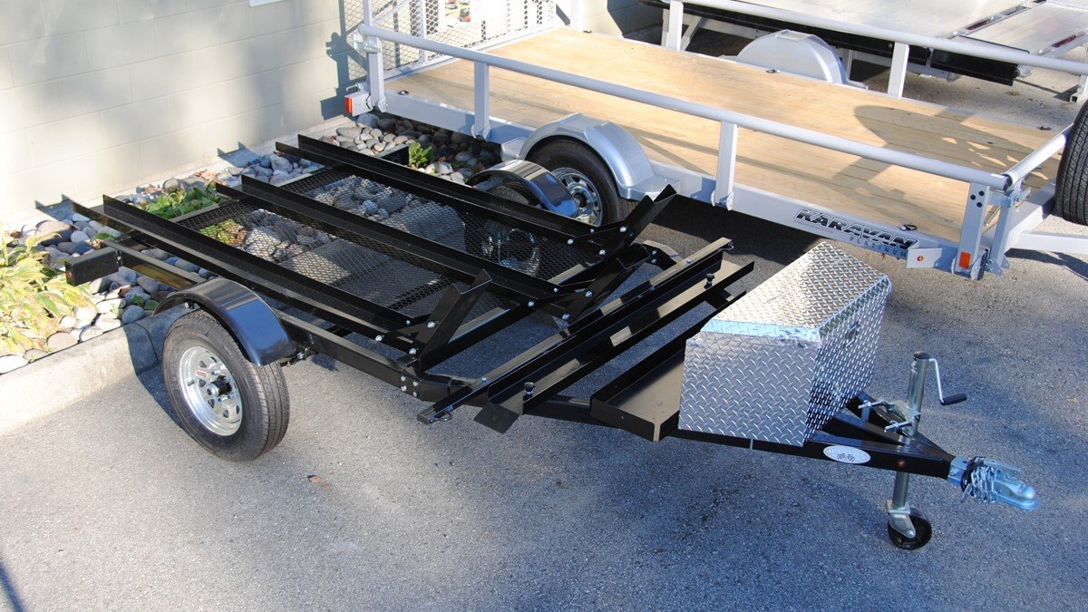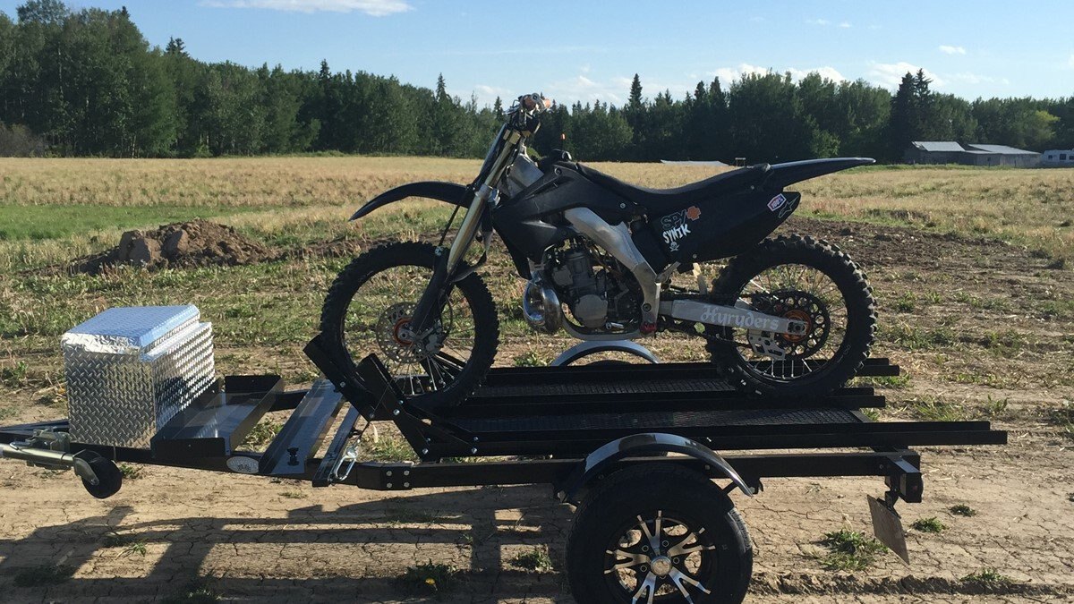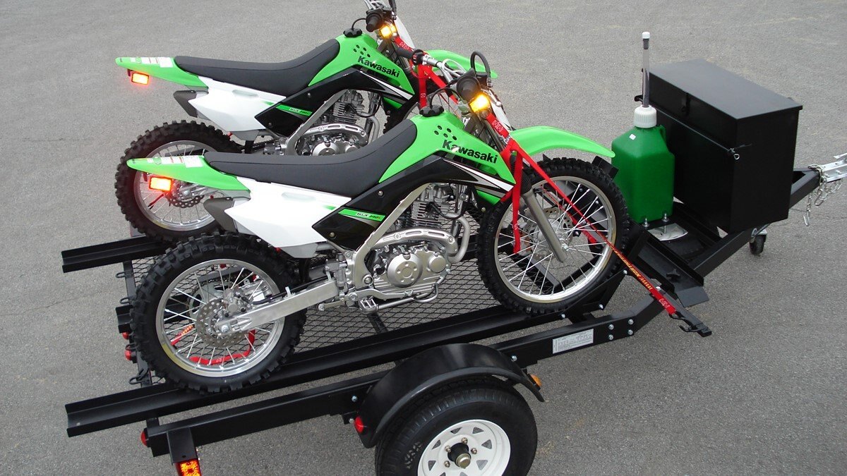 Consider adding the checker-plated tongue storage box, gas jug tray, tongue jack, aluminum rims and a spare tire with a carrier to complete the ultimate dirt bike trailer!