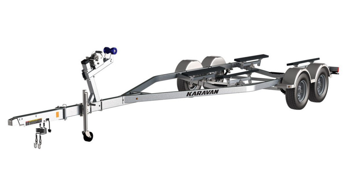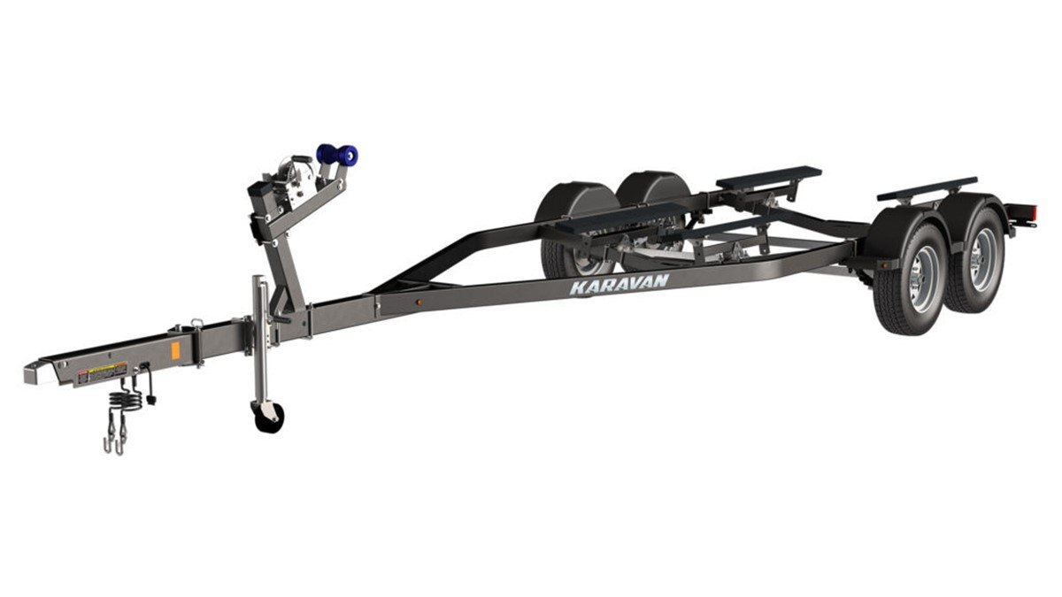 This 4800 lbs. carrying capacity tandem axle model axle is our most requested tandem model. Standard with welded frame, disc brakes, adjustable bunks, swing tongue, sure lube hubs, LED lights, drop down cross members for lower center of gravity when towing or loading and unloading at the boat launch are all reasons why this Karavan model stands out over others. There are many ways to customize your Karavan trailer to meet your needs starting with a choice of Black Textured Paint or Galvanized finish to many of the recommended accessories listed below.