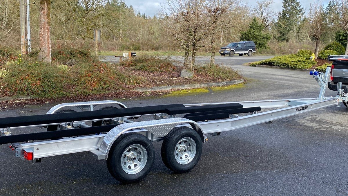It took over a year to design, perfect and run FEA test analysis on our new line up of Karavan Large I-Beam trailers. These trailers are best suited to a variety of boats from fiberglass boats, jet boats, pilot house and coastal offshore boats. Very attractive aluminum I-Beam with patent pending features provide a lighter weight trailer with a design that provides adjustable axles, eliminates traditional aluminum I-Beam flex for added strength and capacity.