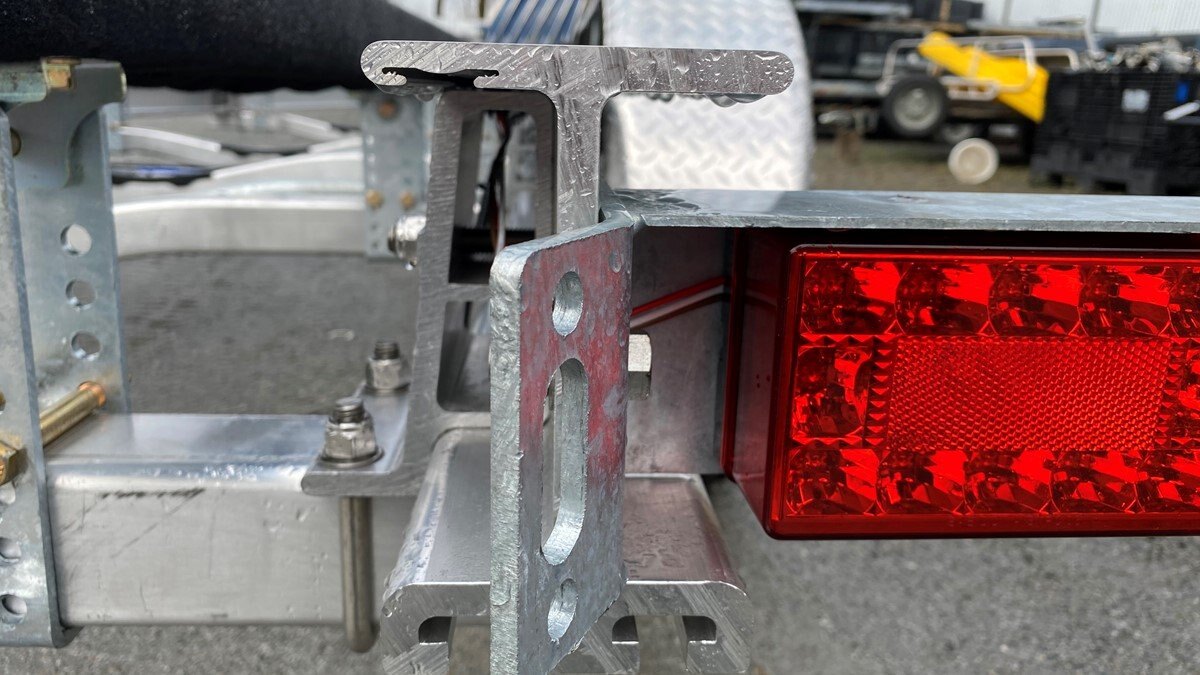 Capture channel built into the I-Beam extrusion allows brake lines and wiring to be tucked away. Out of sight out of mind - Doing this keeps the trailer looking clean and ensures the brake lines and wiring does not get snagged on anything. Also eliminates the use of unsightly clips to hold wiring in place.