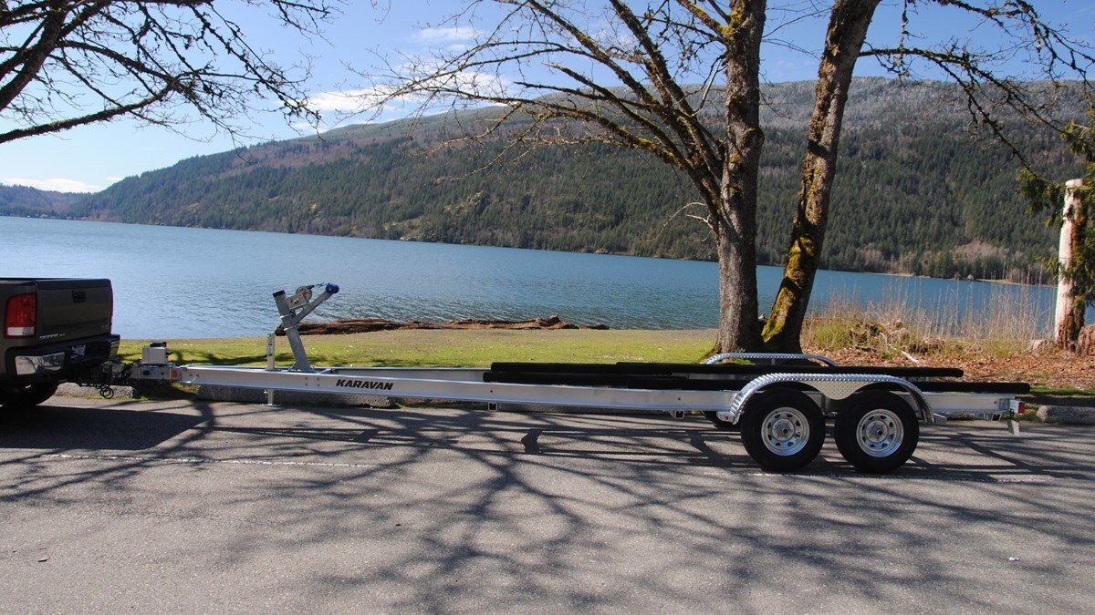 It took over a year to design, perfect and run FEA test analysis on our new line up of Karavan Large I-Beam trailers. These trailers are best suited to a variety of boats from fiberglass boats, jet boats, pilot house and coastal offshore boats. Very attractive aluminum I-Beam with patent pending features provide a lighter weight trailer with a design that provides adjustable axles, eliminates traditional aluminum I-Beam flex for added strength and capacity.
