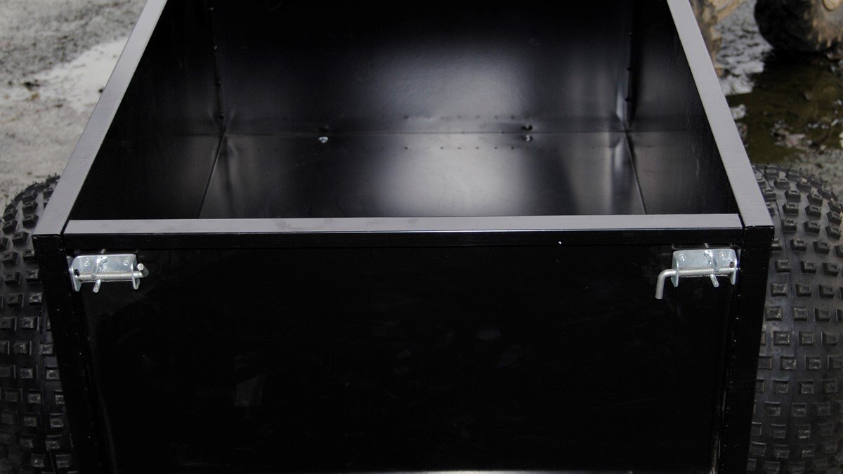 | This pull behind ATV / Lawn & Garden Trailer has a payload of 720 Lbs. Removable tailgate for easy dumping. |