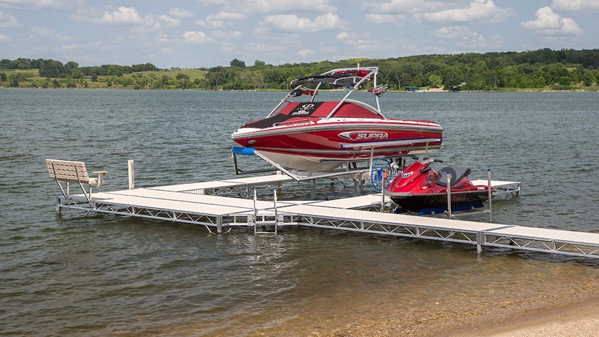 the Infinity TS9 is well known and enjoyed for it's lightweight, low maintenance design. Perfect for firm to soft lake bottoms with shallow to moderate water depths, it's a dock system that carries on the tradition of waters edge enjoyment with it's classic truss design.