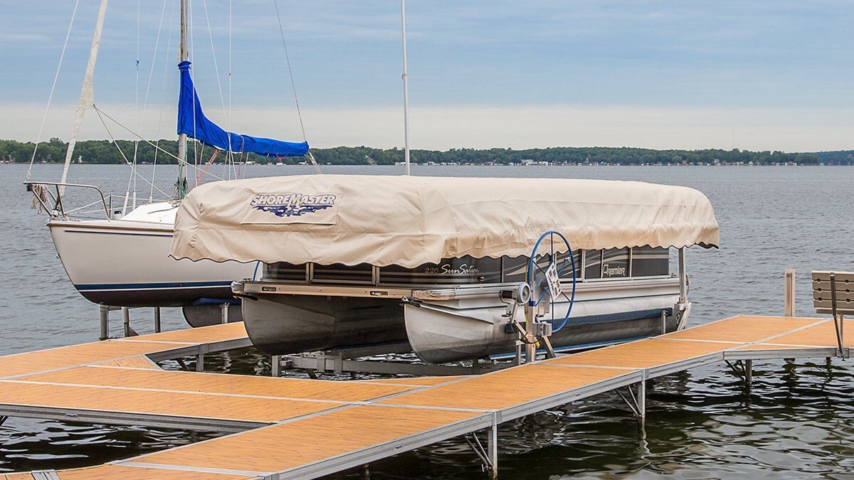 ShoreMasters Pontoon Lift has been designed to perfectly fit today's larger, more powerful and more refined pontoon boats. With new pontoon specific accessories, a longer base and even greater width, you can be sure that your new pontoon will be protected by a ShoreMaster pontoon lift.