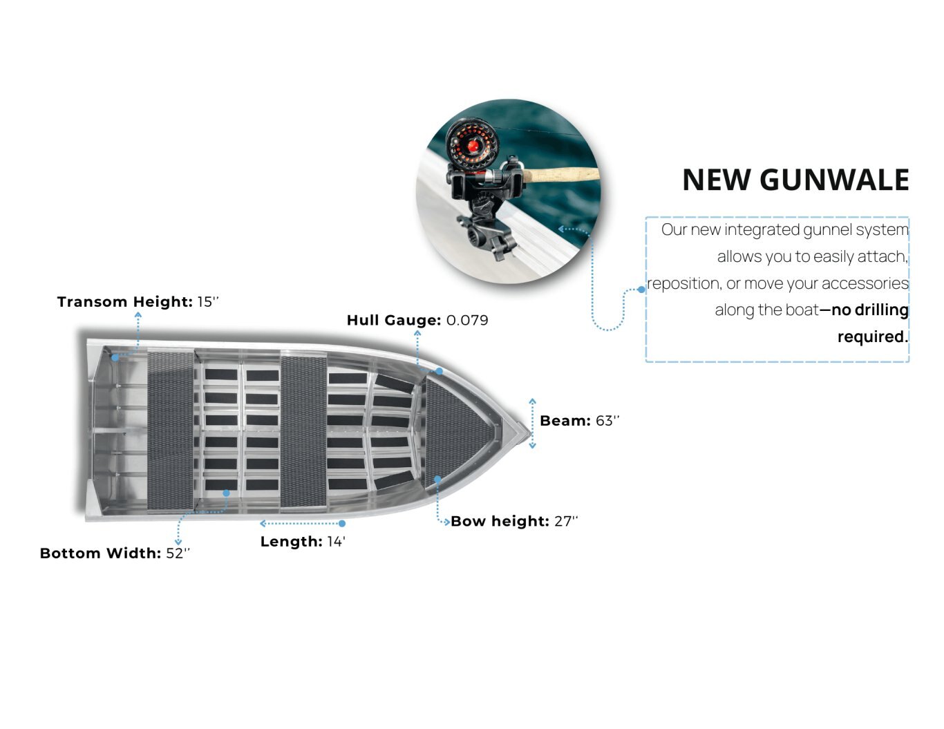 • New gunwale system to reposition, add, and remove your boat accessories—without drilling