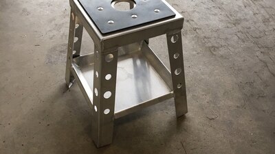 This aluminum bike stand with tool pan gives you the ability to place tools, nuts, bolts & other parts in the tray below while you are working...