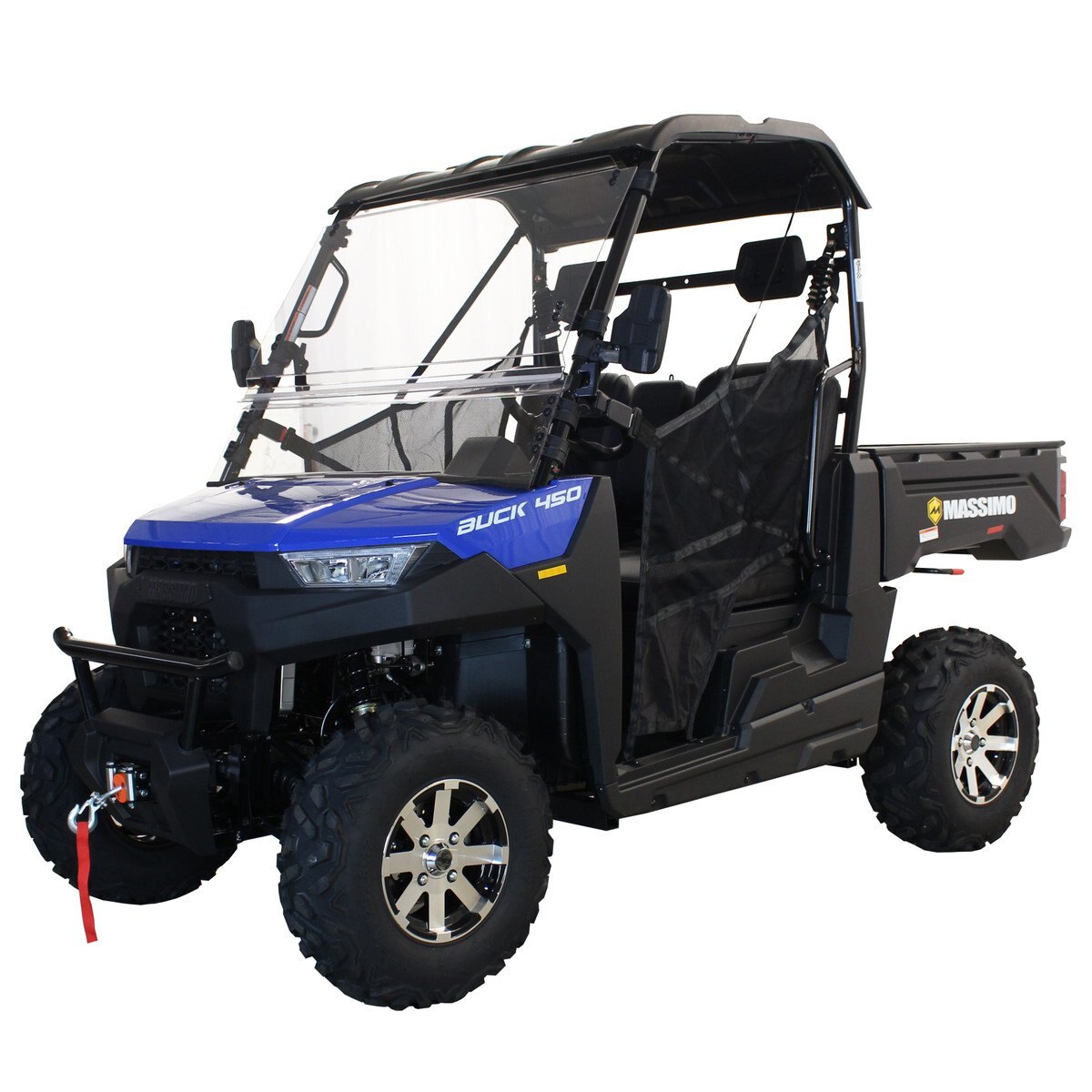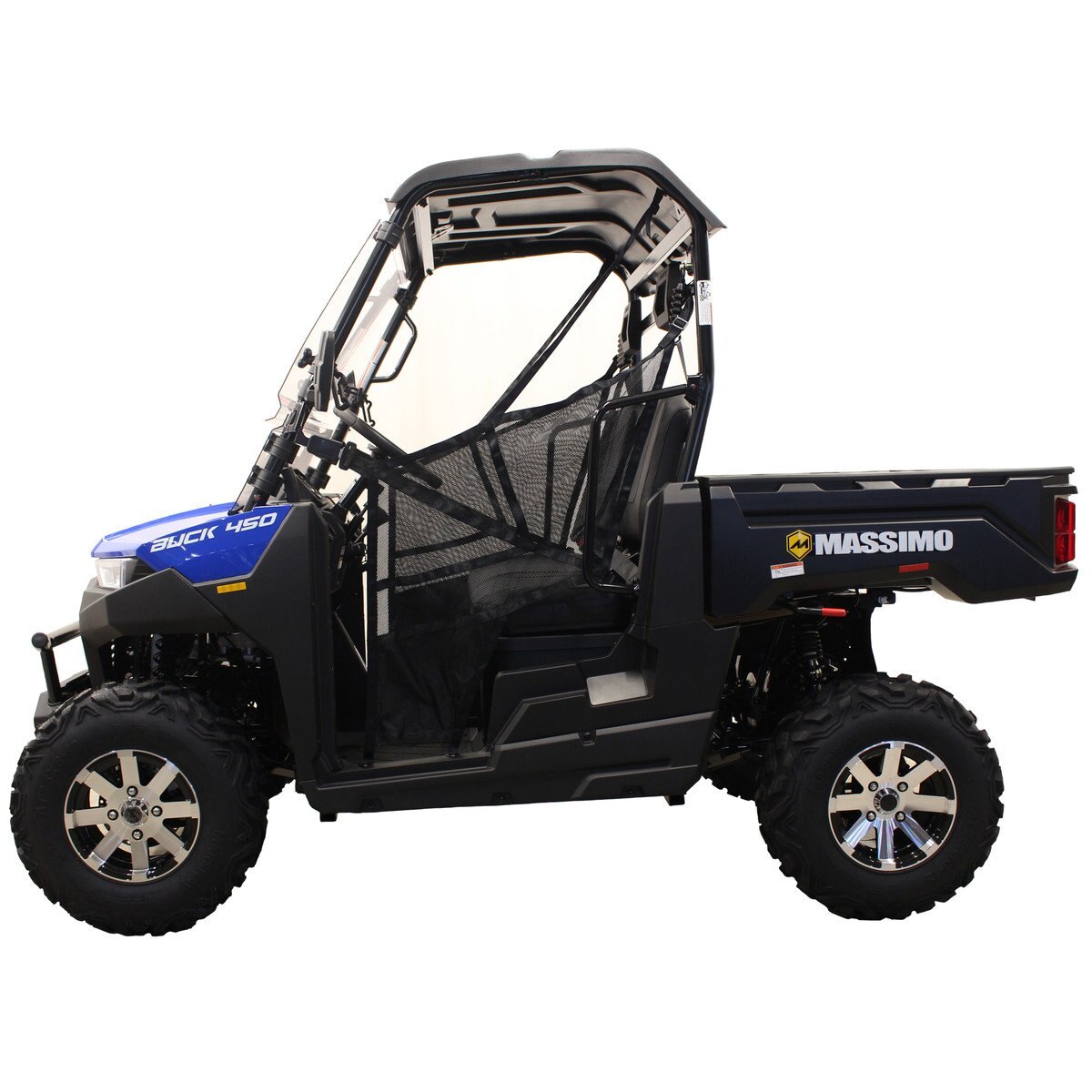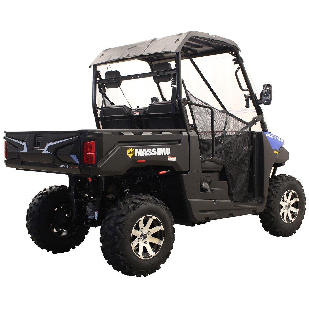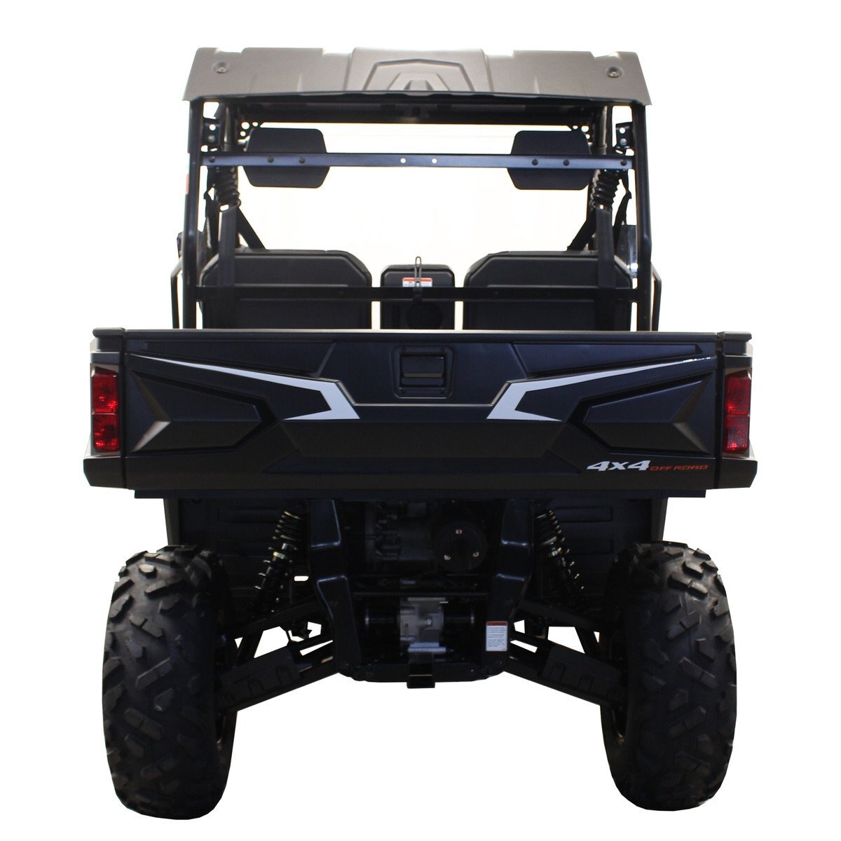 • Vehicle Size (L X W X H): 111 in x 57 in x 76 in• wheelbase: 74 in • Ground Clearance: 11 in • Cargo Bed (L X W X H): 33 In x 50 In x 11 In • Towing capacity: N/A • Cargo bed capacity: 400 LBS • Fuel Capacity: 4.8 gallons • Seat Height: 18 in • Dry Weight: 992 lbs |