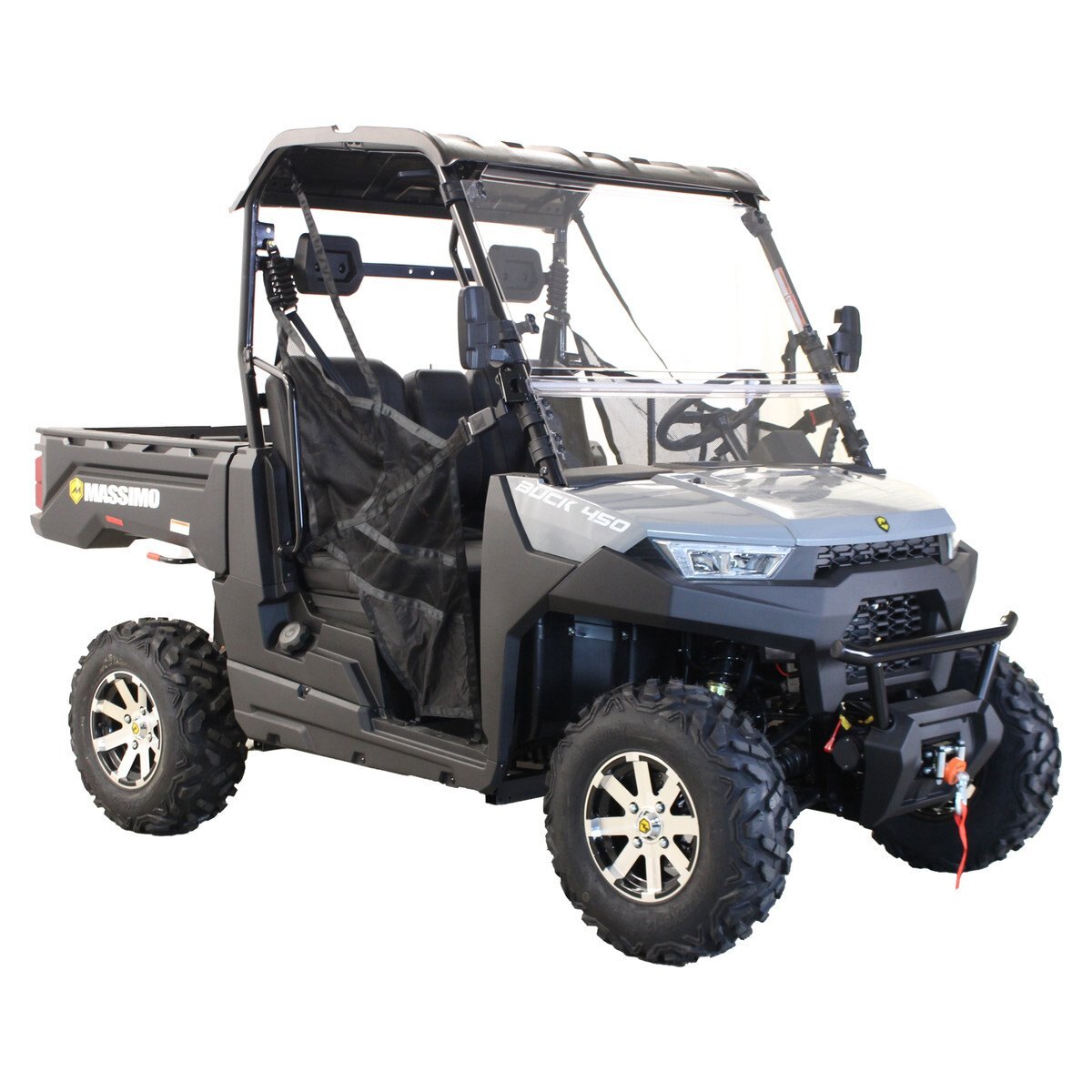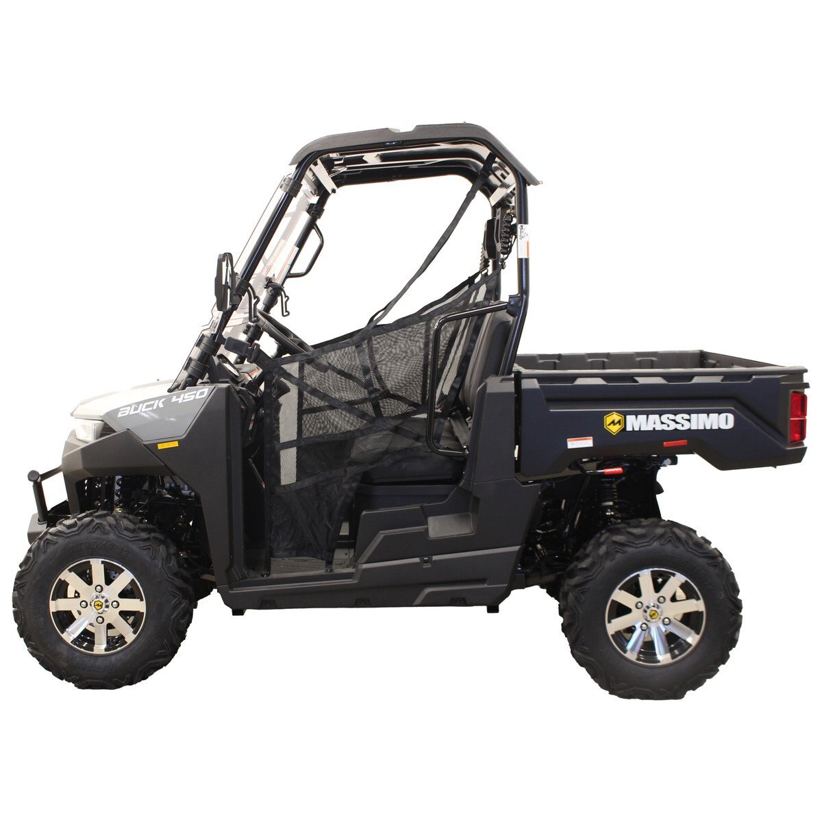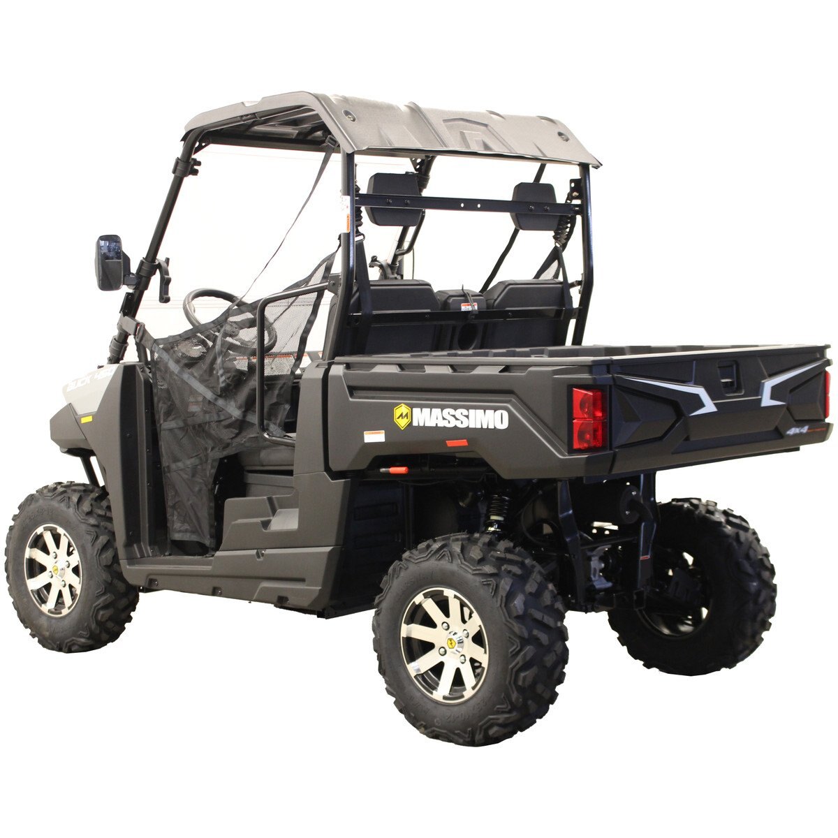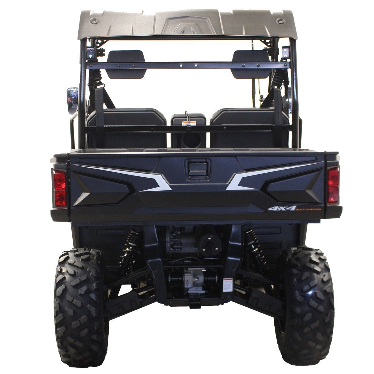 • Vehicle Size (L X W X H): 111 in x 57 in x 76 in• wheelbase: 74 in • Ground Clearance: 11 in • Cargo Bed (L X W X H): 33 In x 50 In x 11 In • Towing capacity: N/A • Cargo bed capacity: 400 LBS • Fuel Capacity: 4.8 gallons • Seat Height: 18 in • Dry Weight: 992 lbs |