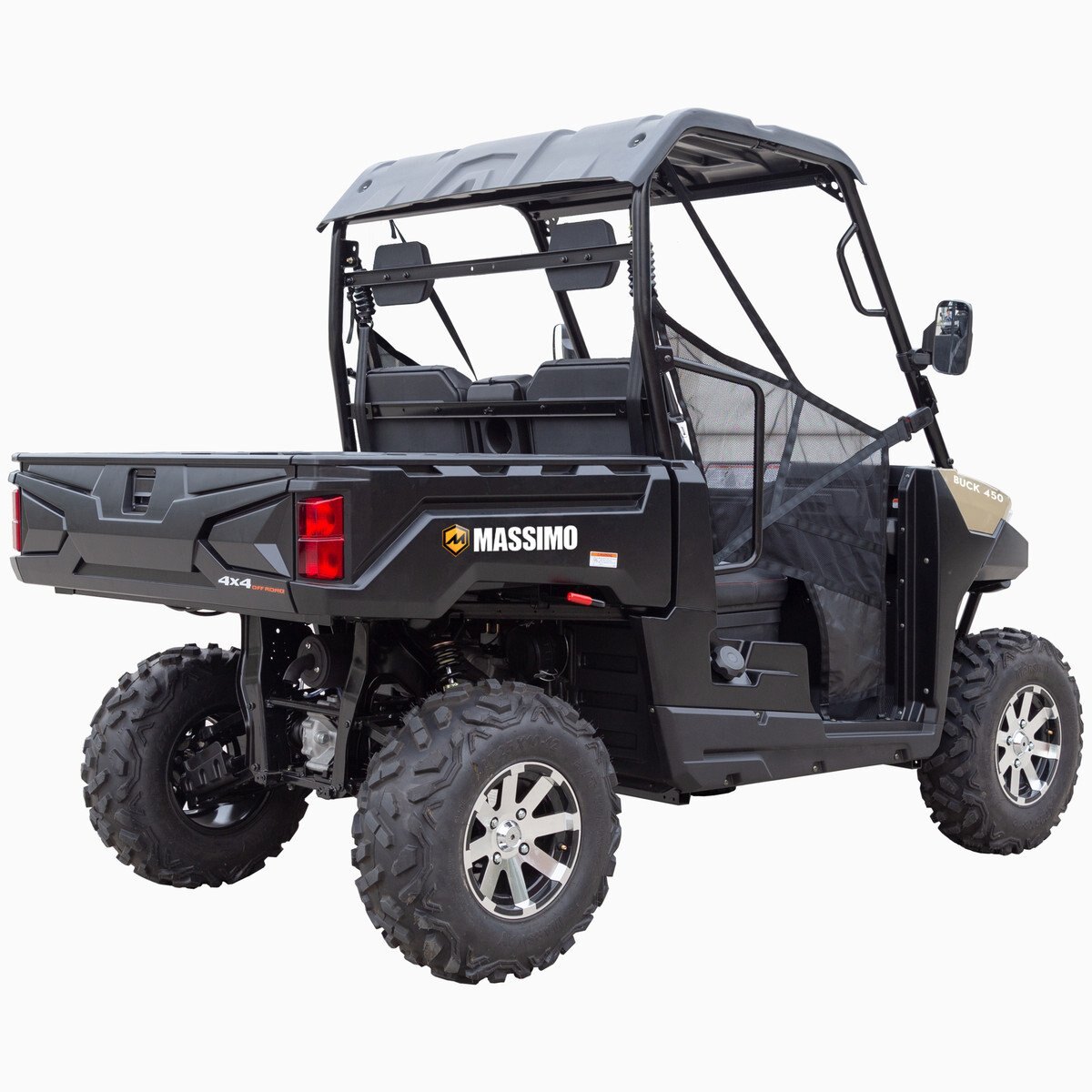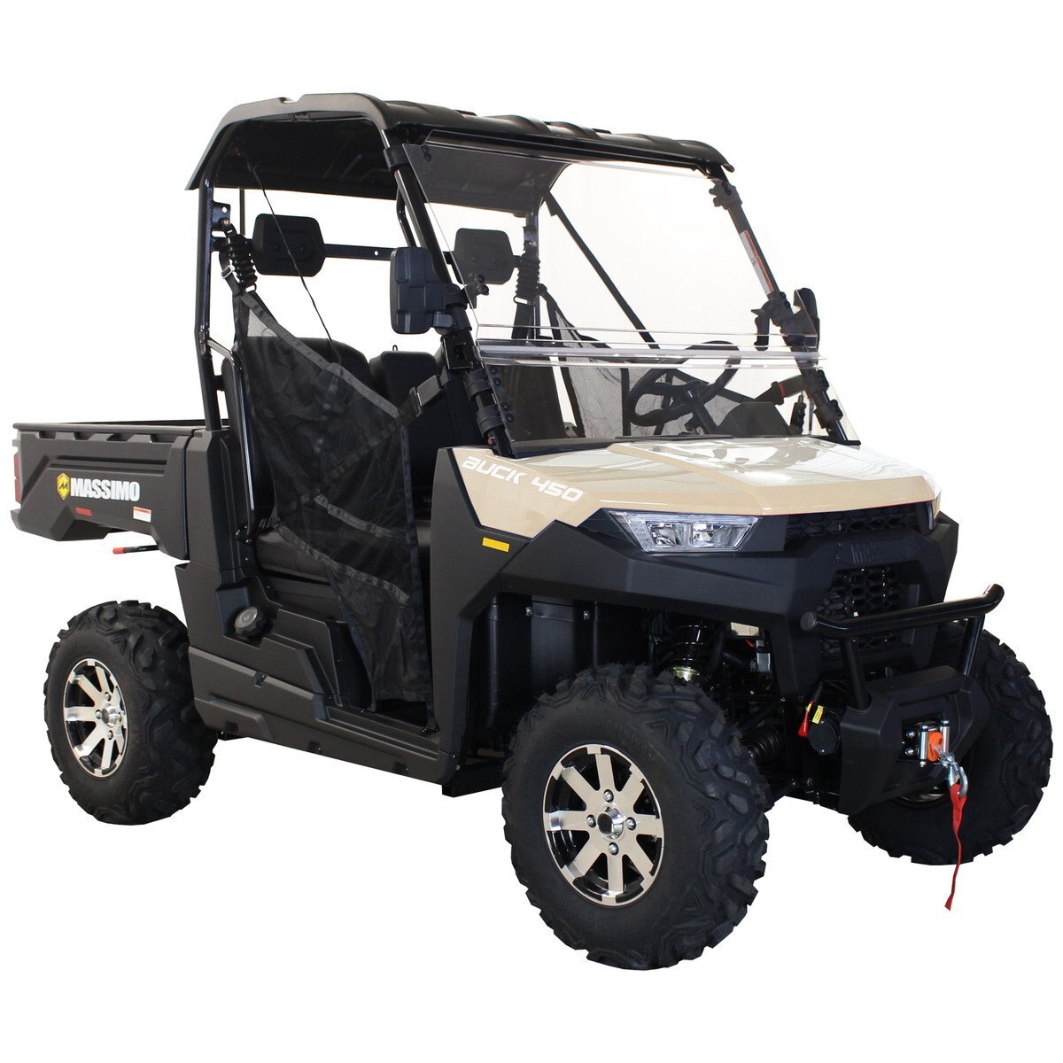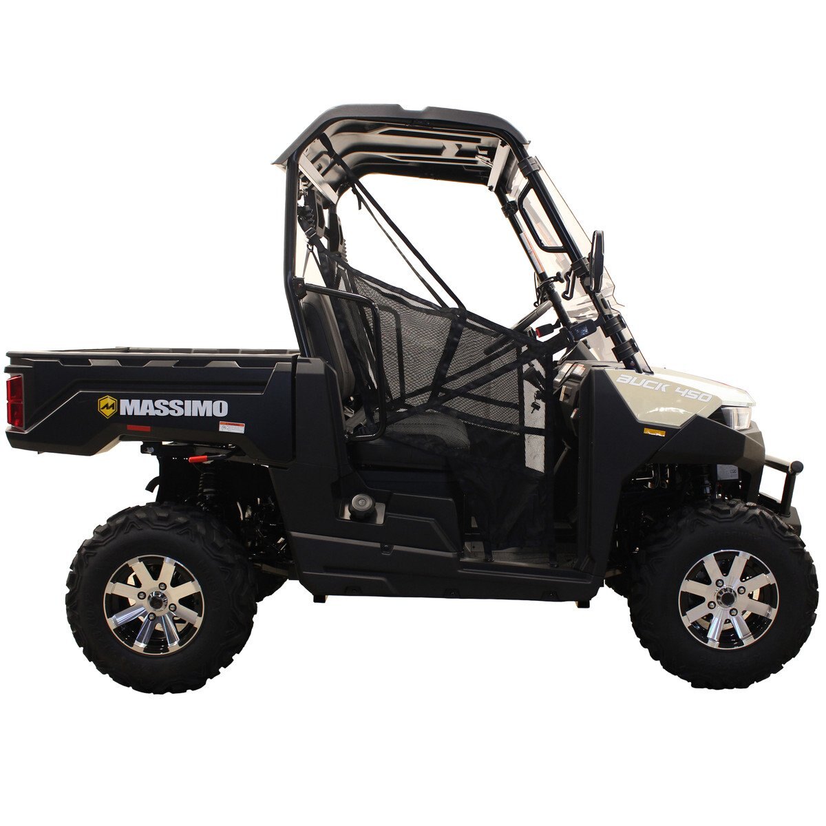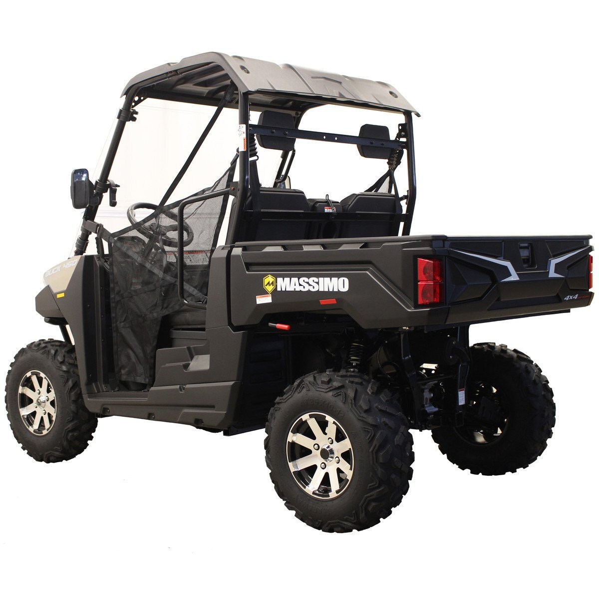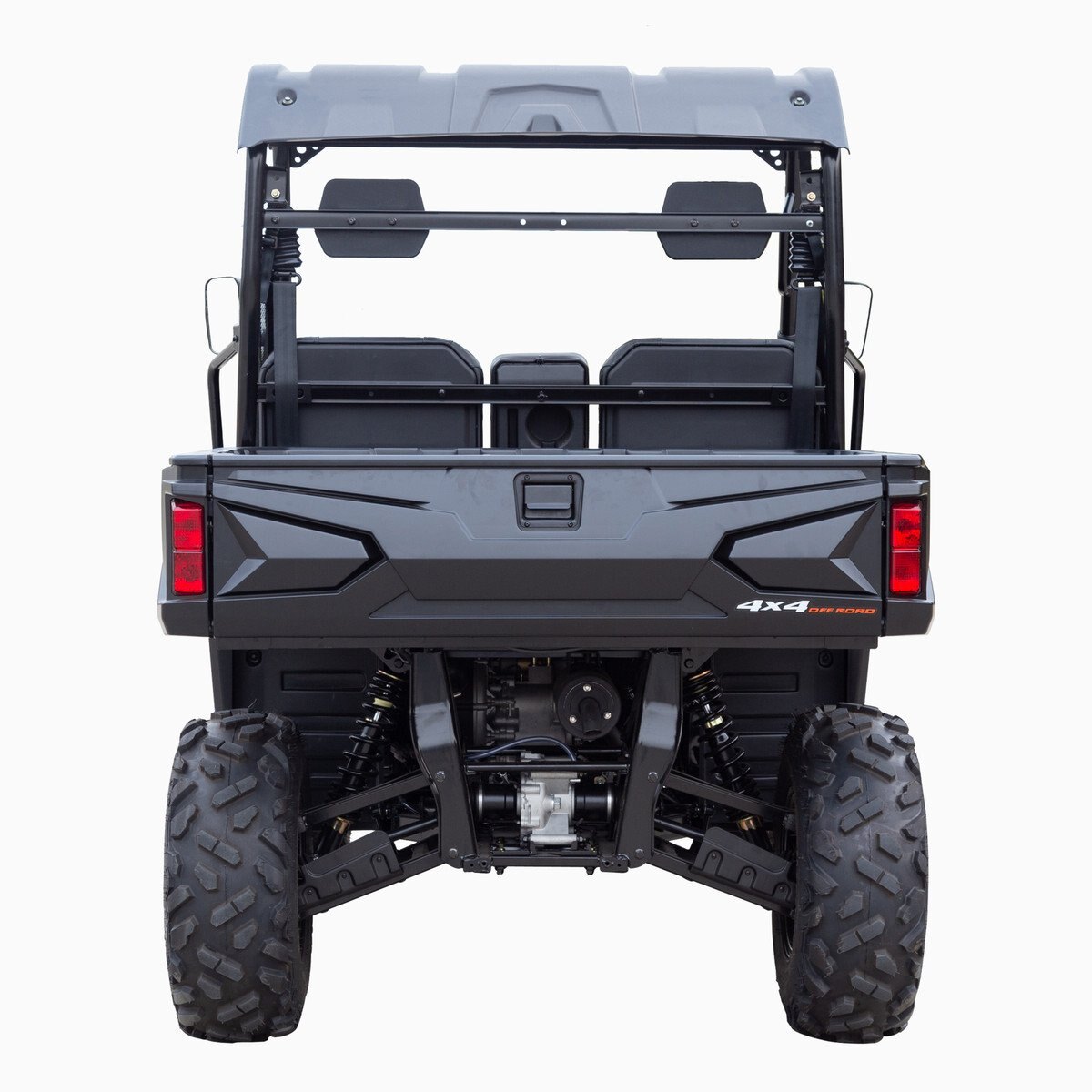• Vehicle Size (L X W X H): 111 in x 57 in x 76 in• wheelbase: 74 in • Ground Clearance: 11 in • Cargo Bed (L X W X H): 33 In x 50 In x 11 In • Towing capacity: N/A • Cargo bed capacity: 400 LBS • Fuel Capacity: 4.8 gallons • Seat Height: 18 in • Dry Weight: 992 lbs |