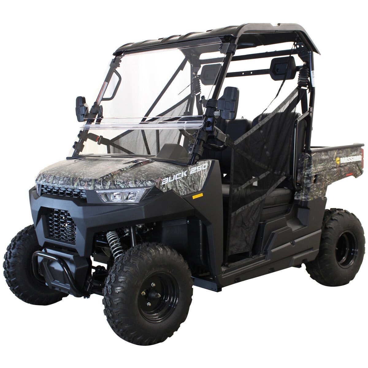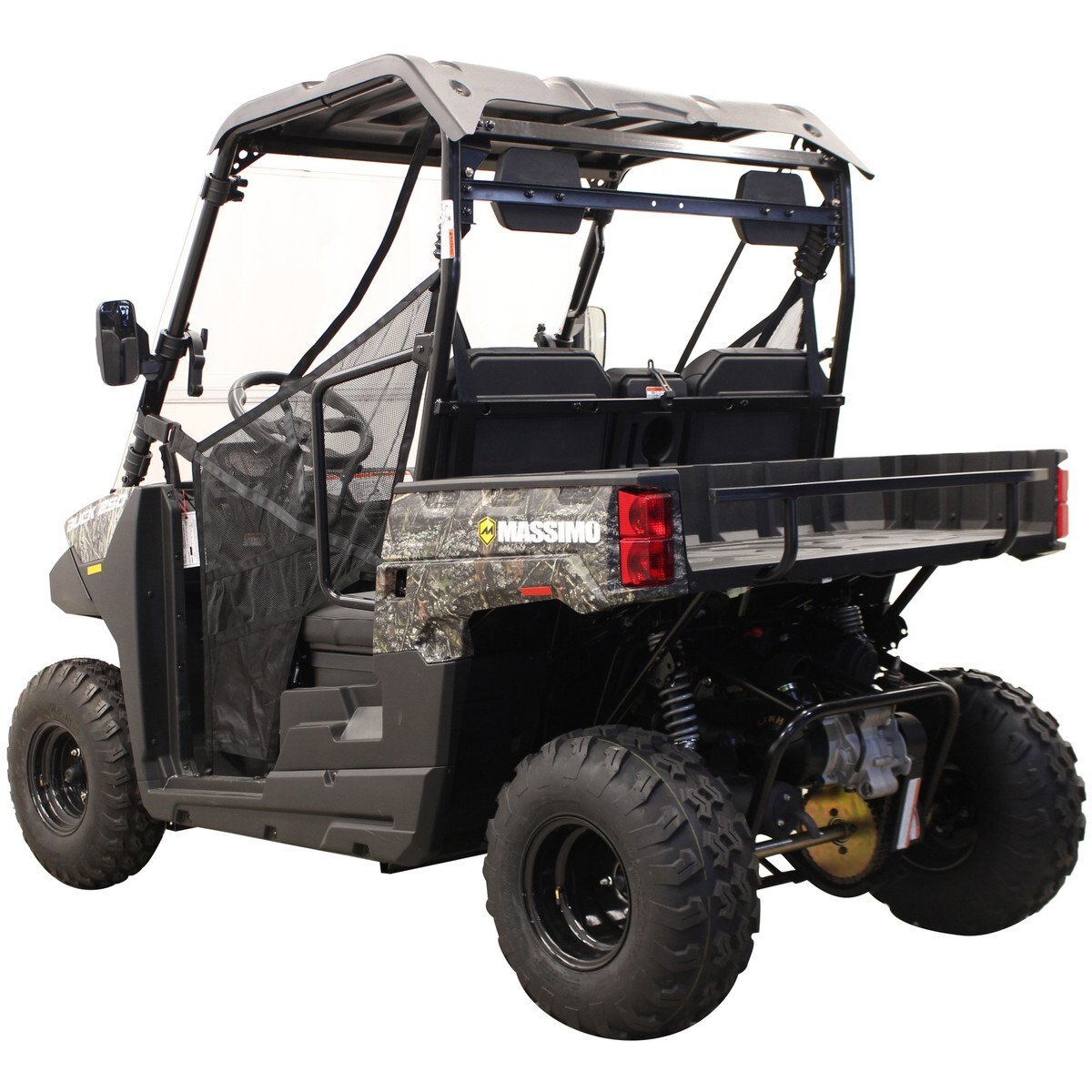 • Vehicle Size (L x W x H): 92 in x 56 in x 72 in• Wheelbase: 66 in • Ground Clearance: 5.5 in • Cargo Bed Capacity: 441 lbs • Cargo Bed (L x W x H): 22 in x 50 in x 6.5 in • Dry Weight: 873 lbs |