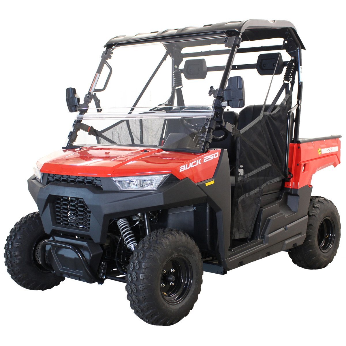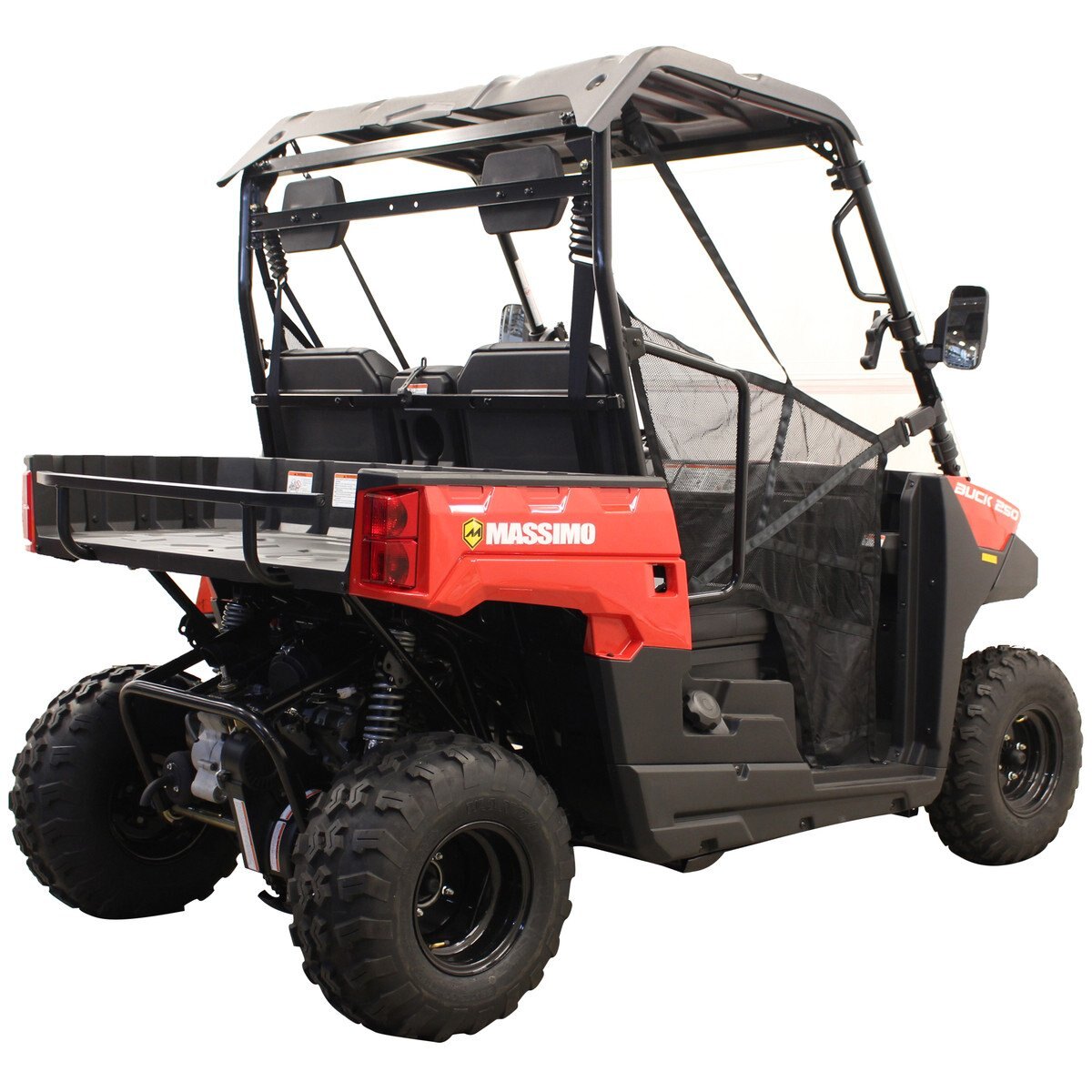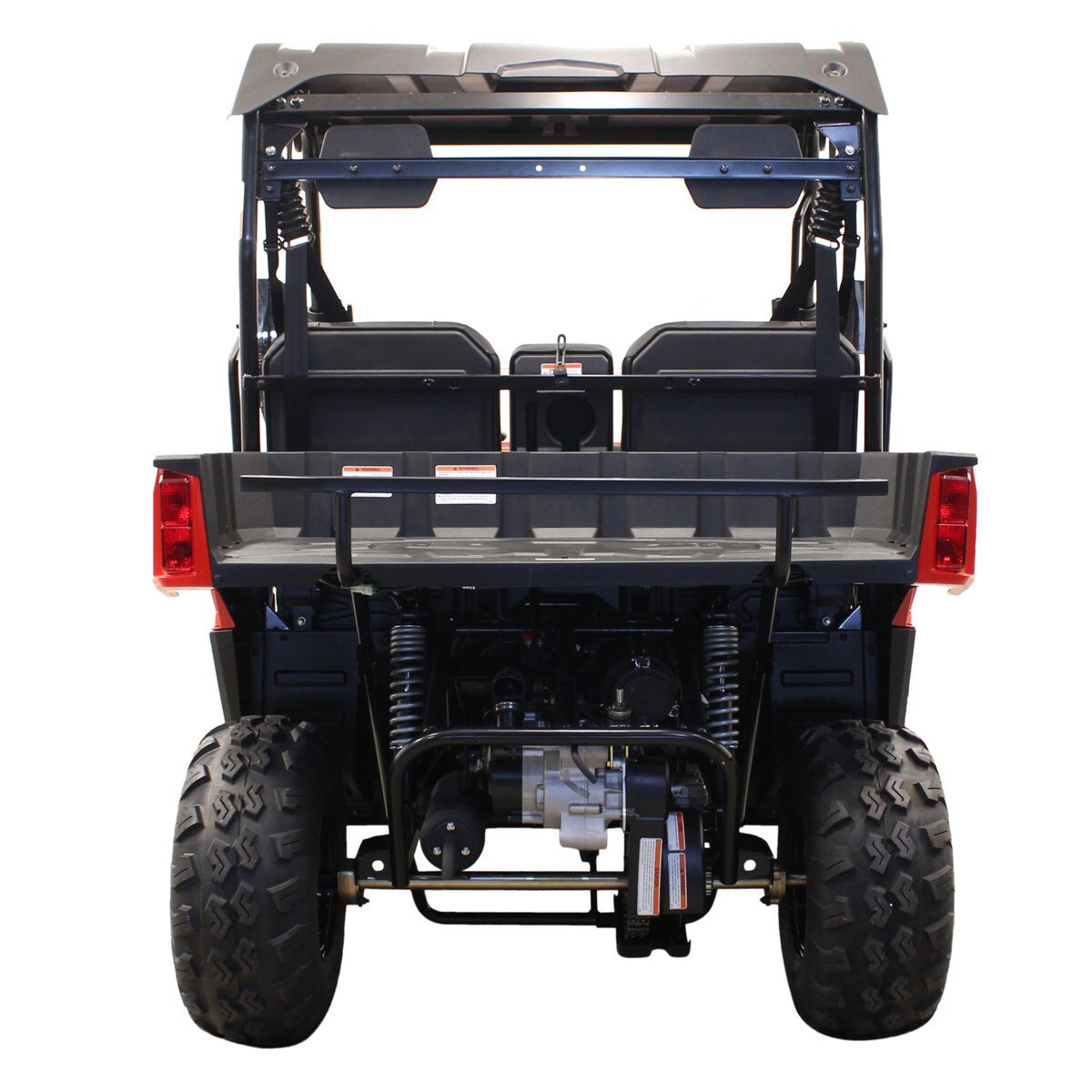 • Vehicle Size (L x W x H): 92 in x 56 in x 72 in• Wheelbase: 66 in • Ground Clearance: 5.5 in • Cargo Bed Capacity: 441 lbs • Cargo Bed (L x W x H): 22 in x 50 in x 6.5 in • Dry Weight: 873 lbs |