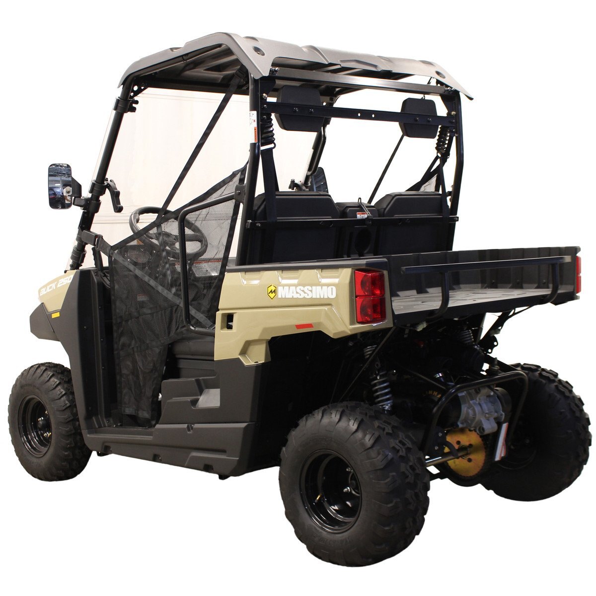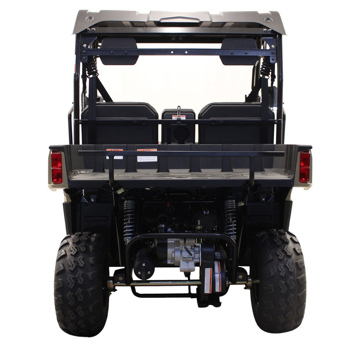 • Vehicle Size (L x W x H): 92 in x 56 in x 72 in• Wheelbase: 66 in • Ground Clearance: 5.5 in • Cargo Bed Capacity: 441 lbs • Cargo Bed (L x W x H): 22 in x 50 in x 6.5 in • Dry Weight: 873 lbs |