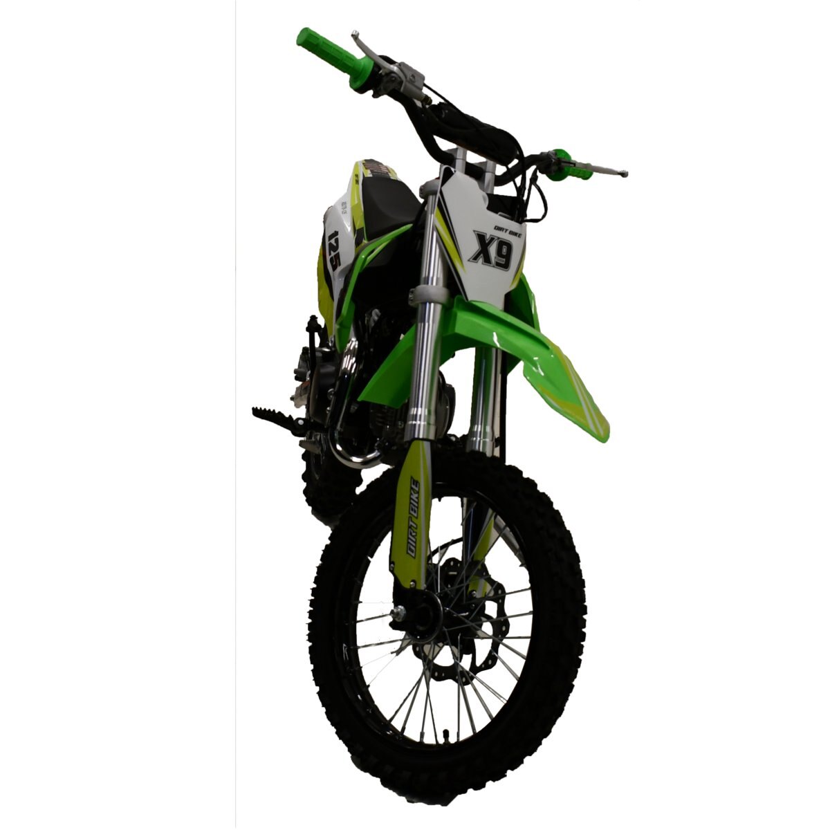 2022 Massimo X9 Dirt Bike Green • Front Suspension: Telescopic Upside-down Forks