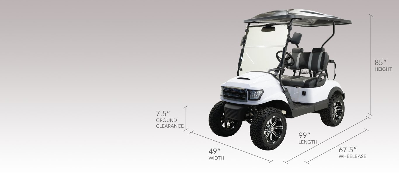 • Vehicle Size (L x W x H): 157 in x 49 in x 82 in• Wheelbase: 104.5 in • Ground Clearance: 7.5 in • Towing Capacity: N/A • Seat Height: 36.5 in • Dry Weight: 1,610 lbs |