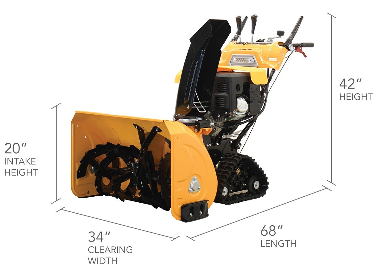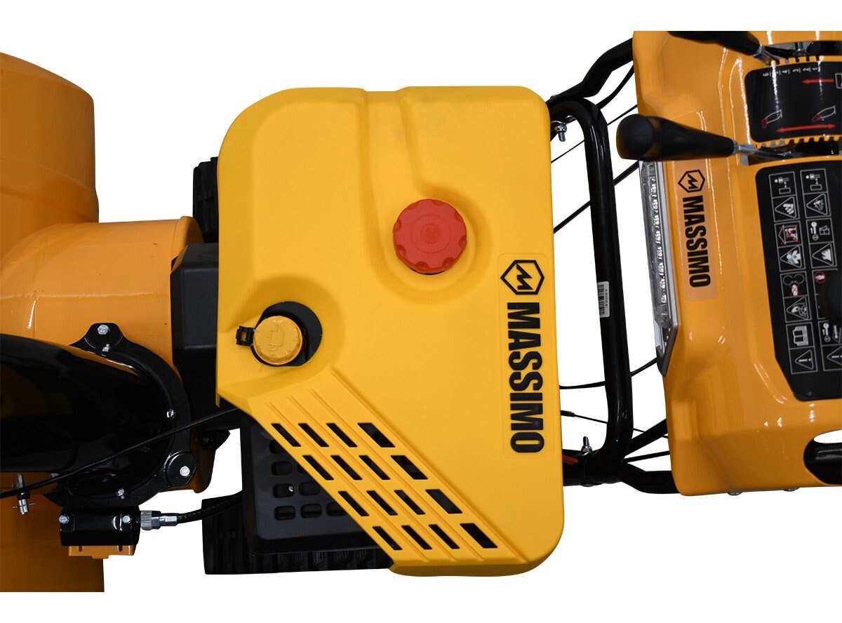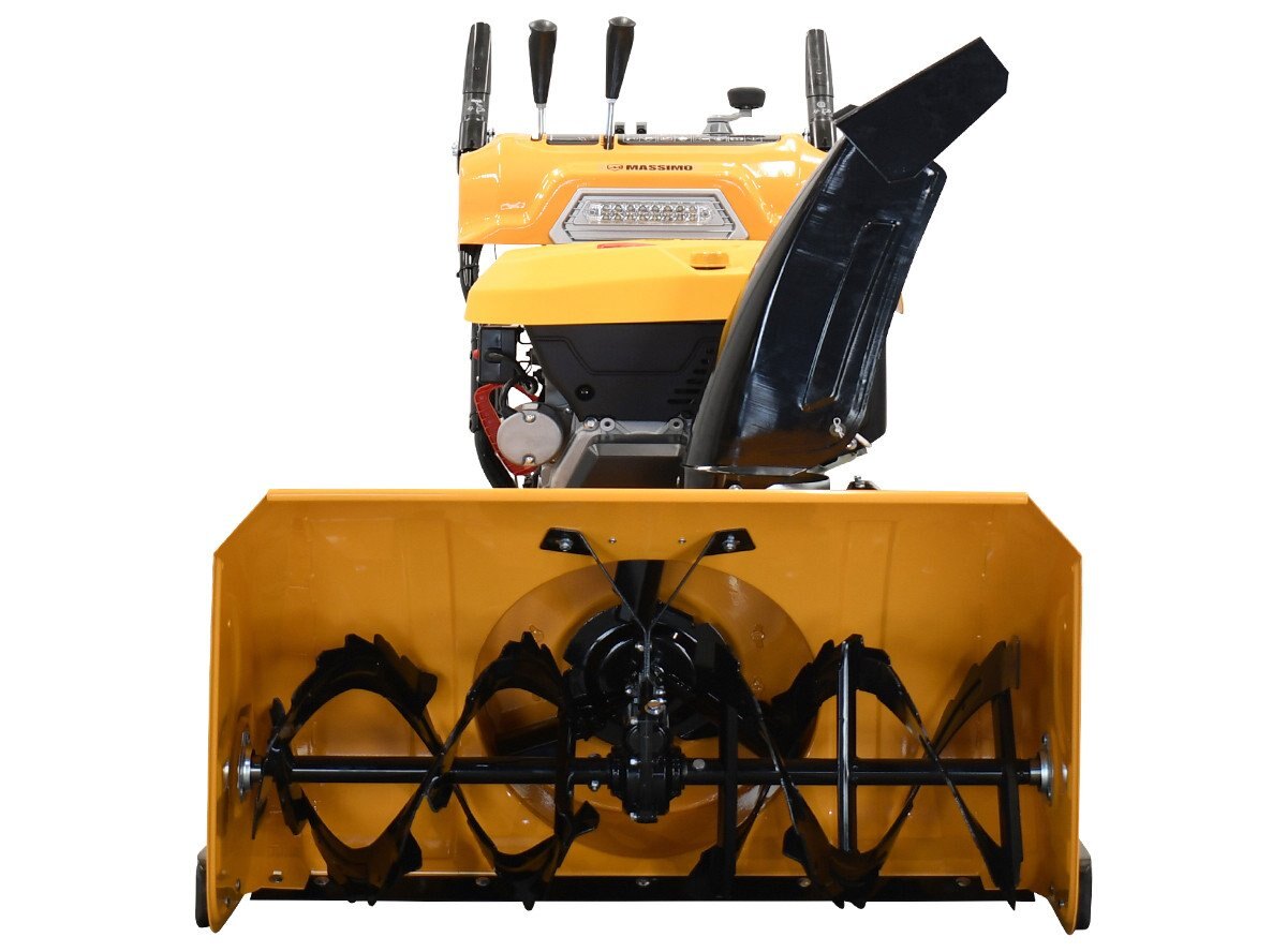 The 34 in. Massimo snow blower provides proven power and performance to make your job easier in tough winter conditions. A 34 in. wide clearing width and 21 in. intake height can plow through the deepest snow. Ideal for concrete, asphalt and gravel surfaces. Convenient one-hand operation levers allow single-handed operation freeing the other hand to change speeds or the chute control without stopping. Headlights are standard. Backed by 2-Year Limited Warranty. • Electric start standard, starts easily with the push of a button • Automatic steering allows smooth, tight turning without pulling or strain - no triggers or levers required • Up to 49 ft. throwing distance, put snow where you want it • The housing, frame, deflector, and chute are 100% steel construction, meaning this snow blower is built to last • Anti-clogging system meters snow to minimize clogging and maximize impeller speed • Anti-clogging system meters snow to minimize clogging and maximize impeller speed • LED Headlight standard • Headlight standard • This unit doesn't come with the chute guard