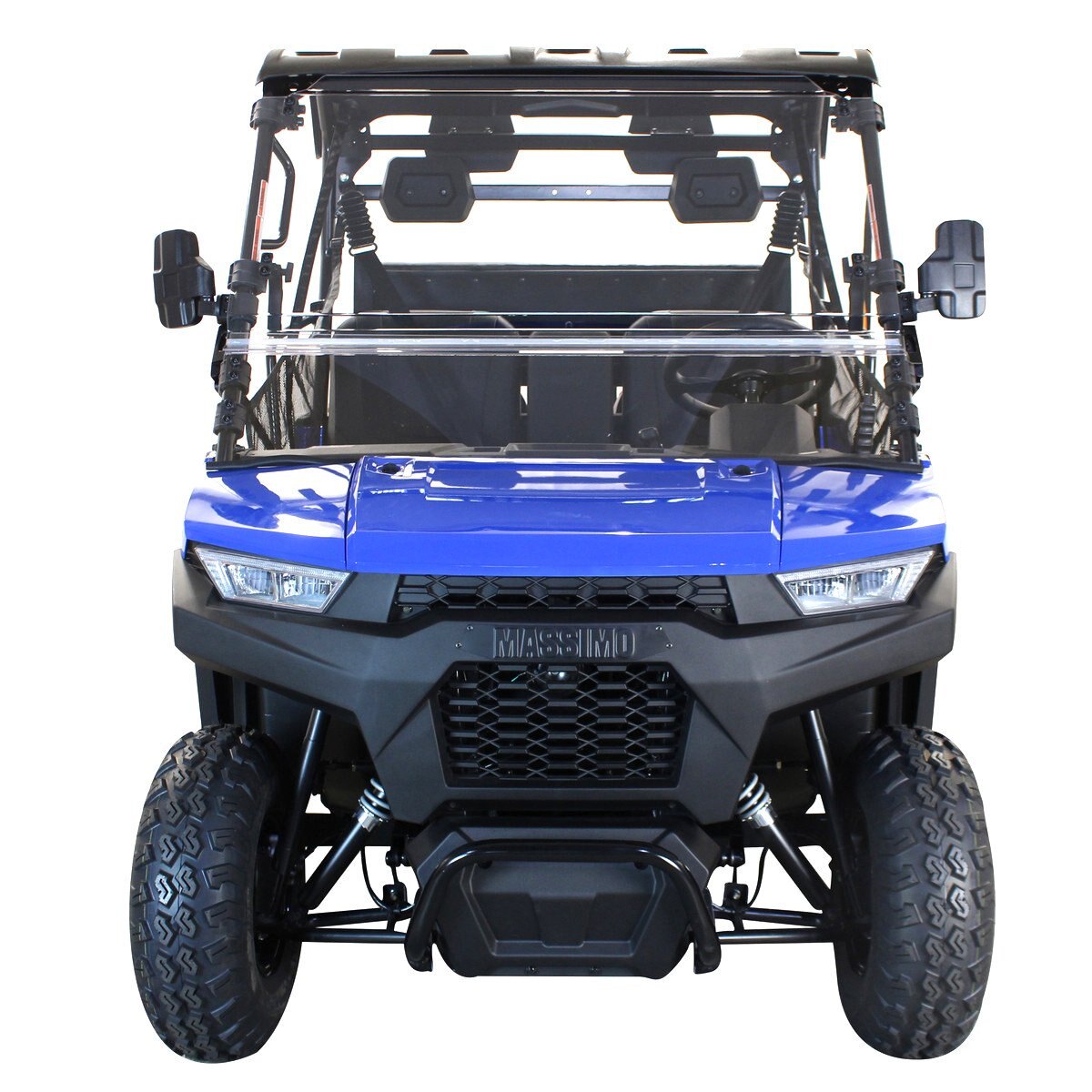 2022 Massimo BUCK 250X GOLF Blue Front Brakes: Hydraulic disk brakes with drilled and slotted vented rotors and single piston calipers