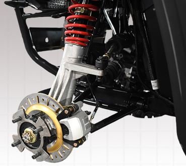 FRONT BRAKES: HYDRAULIC DISC BRAKES WITH DRILLED + SLOTTED ROTORS AND SINGLE PISTON CALIPERS REAR BRAKES: HYDRAULIC DISC BRAKES WITH DRILLED + SLOTTED ROTORS AND SINGLE PISTON CALIPERS FRONT SUSPENSION DOUBLE A-ARM WITH ADJUSTABLE PRELOAD REAR SUSPENSION: DOUBLE A-ARM WITH ADJUSTABLE PRELOAD