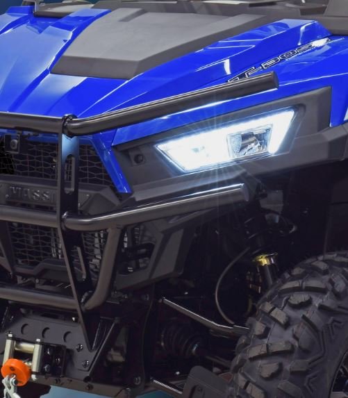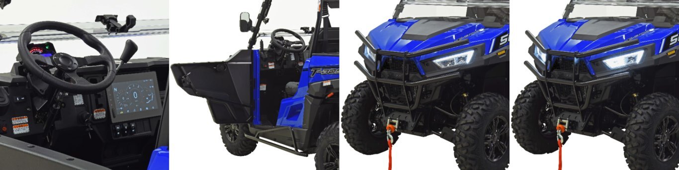 • LED Headlights • Tilting Full Windshield • 10 Inch Touchscreen w/ Front & Rear Camera • ABS Half Doors • Aluminum Alloy Wheels • 3000lb Winch • Front Bumper • Rock Sliders
