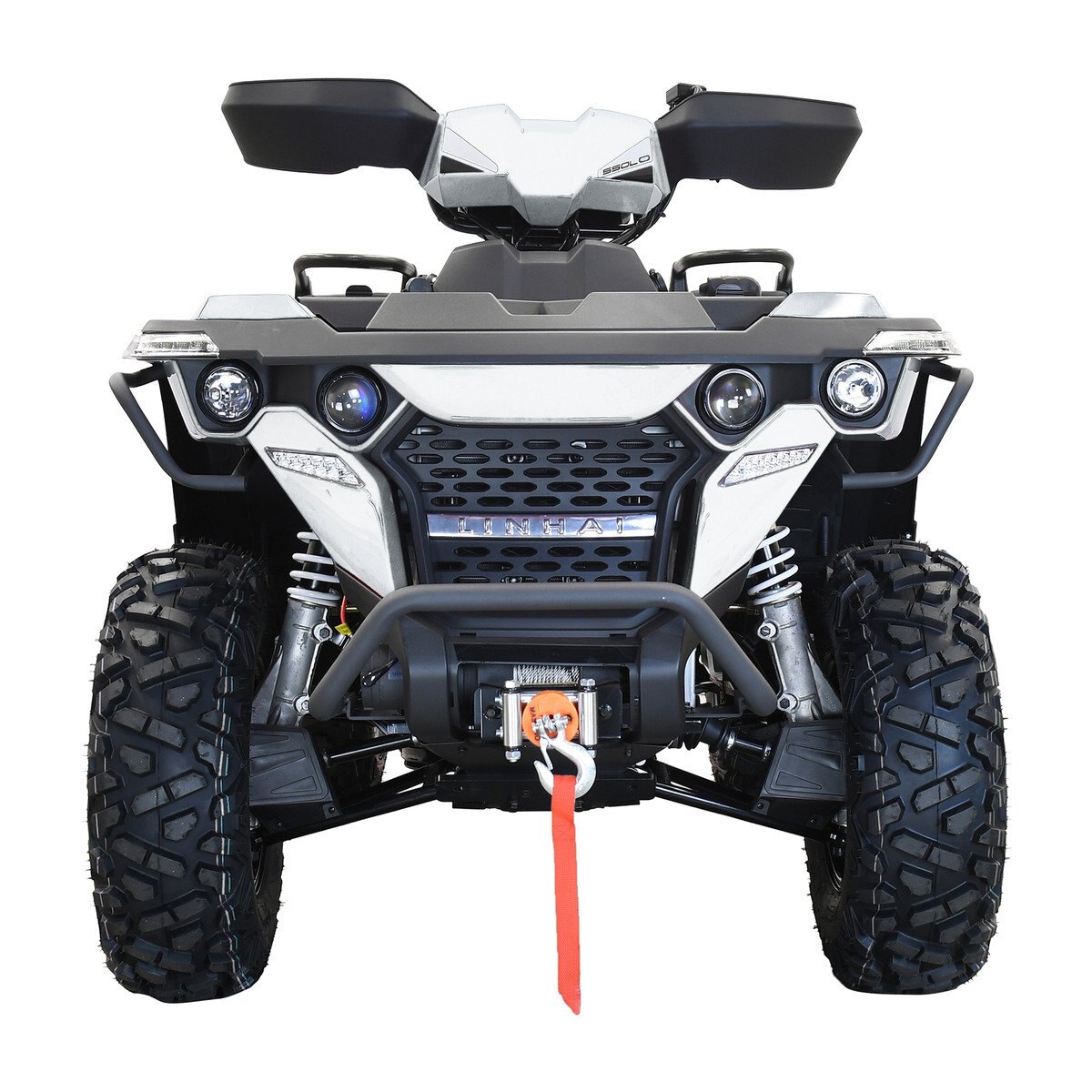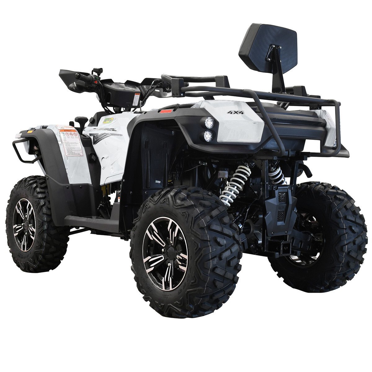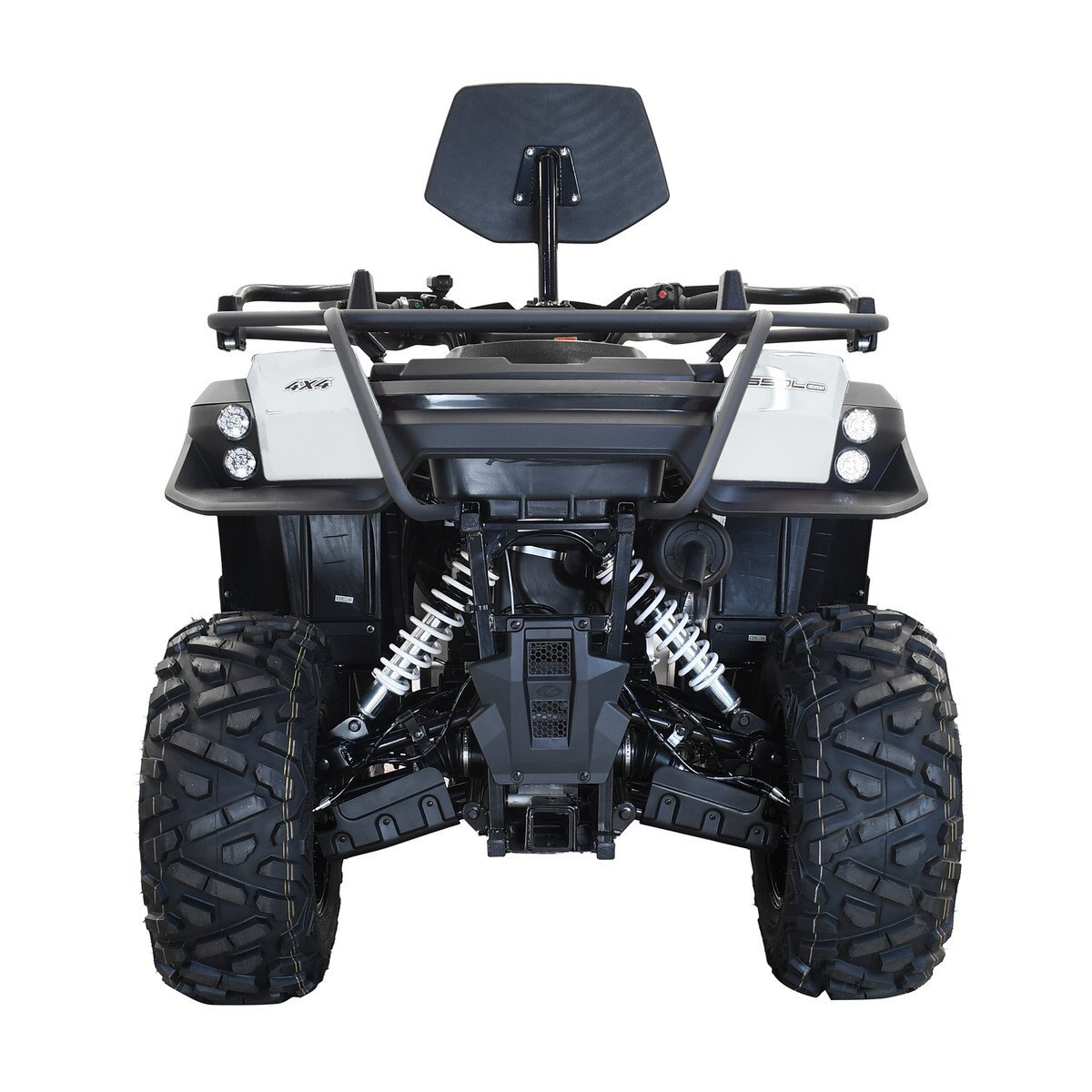 The rugged and powerful Massimo MSA 550L is an ATV designed for the toughest outdoor adventurers. With a single cylinder 4-stroke engine and 493cc displacement, it packs 33 horsepower and can reach speeds of up to 49mph. The 4WD system, along with its 10.5 inches of ground clearance and 25 inch tires, allows it to tackle any terrain with ease. The MSA 550L also features a 374lb load capacity and 1200lb towing capacity, making it the perfect companion for heavy-duty tasks. With Forward, Neutral, and Reverse gears, it offers ultimate control and maneuverability. Get ready to conquer the outdoors with the Massimo MSA 550L.