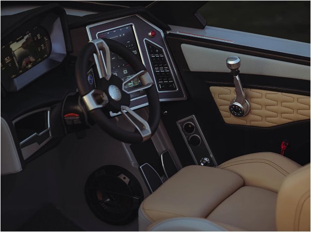 POWERFUL PERFORMANCE New for 2023, the X26 can be optioned with an Ilmor SUPERCHARGED 6.2L Engine. Boasting 630hp and 665 lb-ft of torque, this engine is the most powerful in the world. Not only does the X26 deliver powerful performance behind the wheel and behind the boat, it also comes with Quiet Exhaust, making the on-water experience even better for everyone onboard. |
