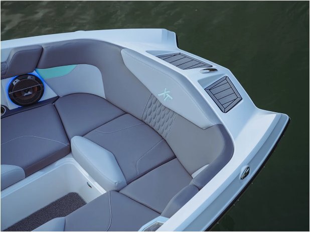 VERSATILE OPTIONS With room for up to 17 and MasterCraft’s signature pickle-fork bow, the XT24 takes comfort, space, and storage to a whole new level. The thoughtful interior design and standard transom walkthrough of the XT24 allows hassle-free access to transom seating and an available flip-down swimstep. Enjoy everything from easy lounging to action-packed viewing thanks to the convertible flip seat, convertible lounge pad, and pop-up seat back options. |