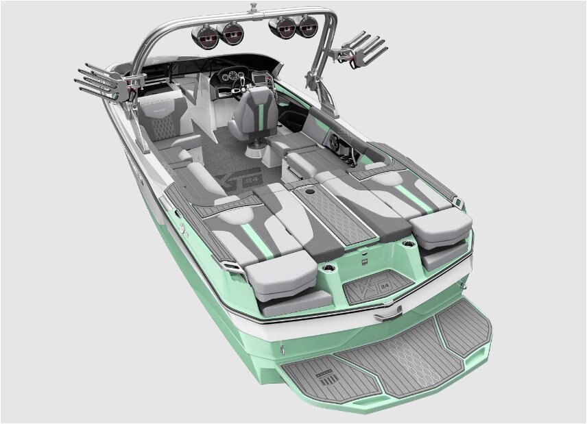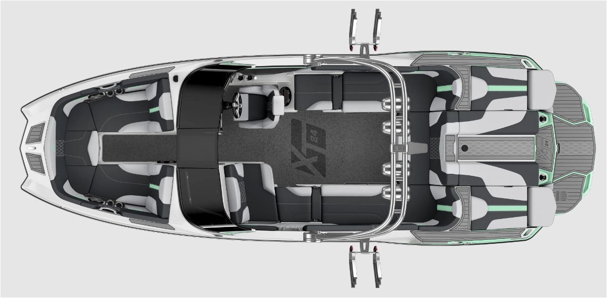 The XT24 serves up bold looks, big performance, and the best reliability. At 24 feet and with room for 17, the XT24 offers the most in size, storage, and seating of all the models in the XT family. In addition to its size, the XT24 delivers versatile customization options and unreal behind-the-boat performance. Thanks to MasterCraft’s integrated SurfStar system, the XT24 produces the most fun wakes and waves for riders of all sizes and skill levels. |