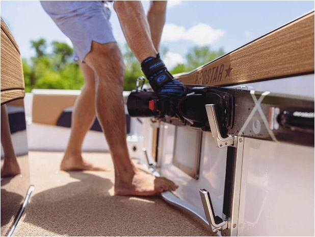 SUPERIOR HANDLING The 2023 ProStar is the industry’s only waterski boat with four fins for even better tracking, even better control, and an even better driving experience. Paired with the new hull rails and a sleek yet sophisticated helm featuring a 10” touchscreen, the ProStar offers the best ski boat driving experience on the water. |