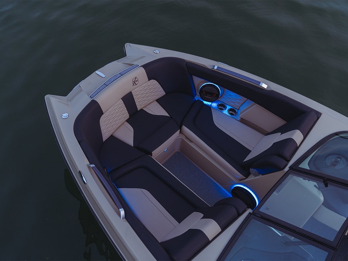 The X24 is packed with luxurious amenities including an elevated captain’s experience. From the ease and convenience of the power helm seat to the industry’s most powerful stern thruster, the experience behind the wheel of an X24 is—simply put—premium. Plus, with plush transom lounge seats, new power board racks, and crystal clear Klipsch audio, your crew’s experience is guaranteed to be nothing short of premium. |