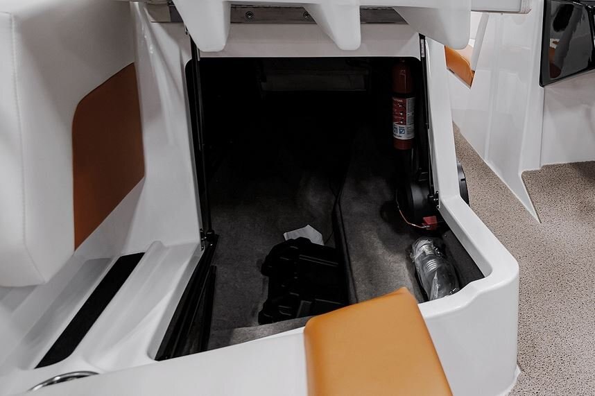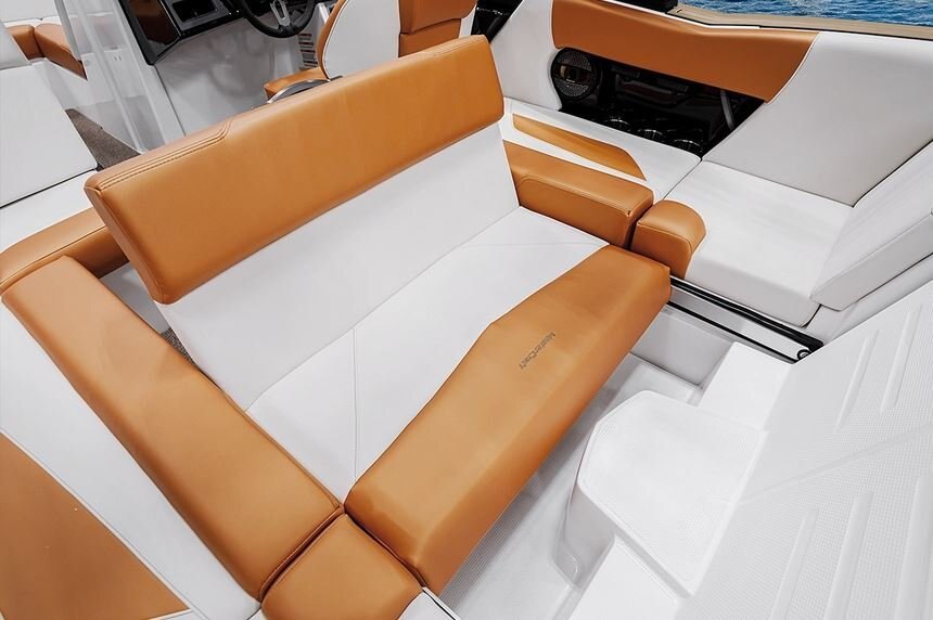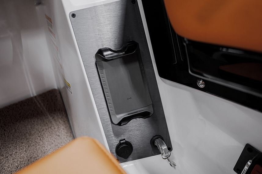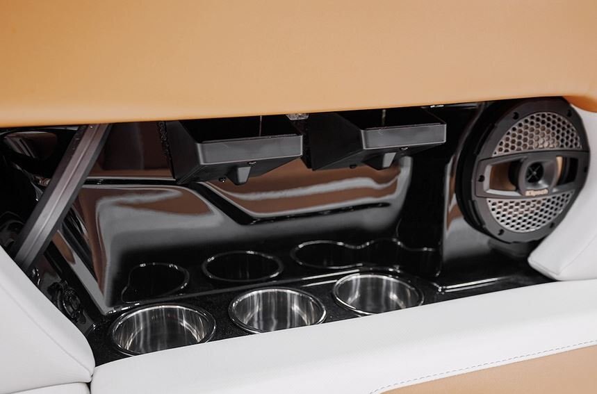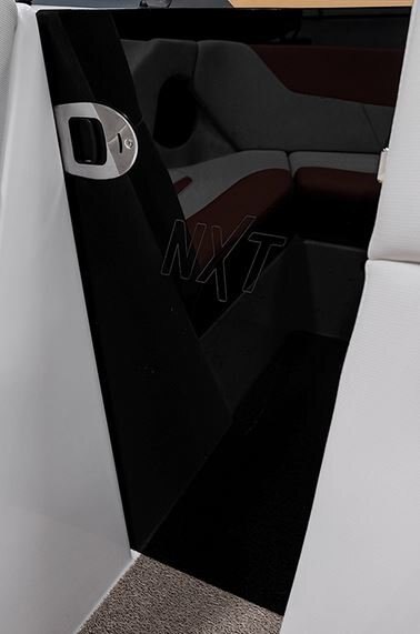 Enjoy the comfort and convenience of ergonomic seating and easily accessible hinged storage. Beat the heat with the flip-down swimstep and CoolFeel vinyl, ensuring a 30% cooler experience, even during the hottest summer days. Plus, with the industry's most board storage, standard clamping board racks and optional rear locker nets, the NXT20 has an impressive amount of storage, especially for a 20' boat. |