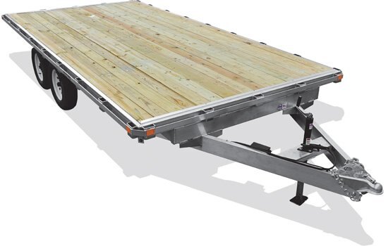 The ARCH is an all aluminum frame flatbed hauler with a deck-over design providing a maximum width of 102″ to help carry extra-wide loads. The deck height is 33-1/2″ with the standard 3,500 lb. tandem axles and ST205/75R15 C Rated Radial Tires. The loading ramps are 6′ long and tuck in neatly under the bed for easy access and transport. Hitch options are many, so see product details to find your match.