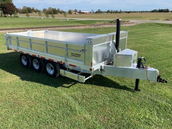 Take on demanding projects at home and on the job with a Millroad Manufacturing dump trailer. Explore our trailer options and find out how you can benefit from a custom aluminum dump trailer for hauling soil, dumping gravel or transporting equipment. Keep your project moving forward and don’t worry about renting a dump truck or trailer.
