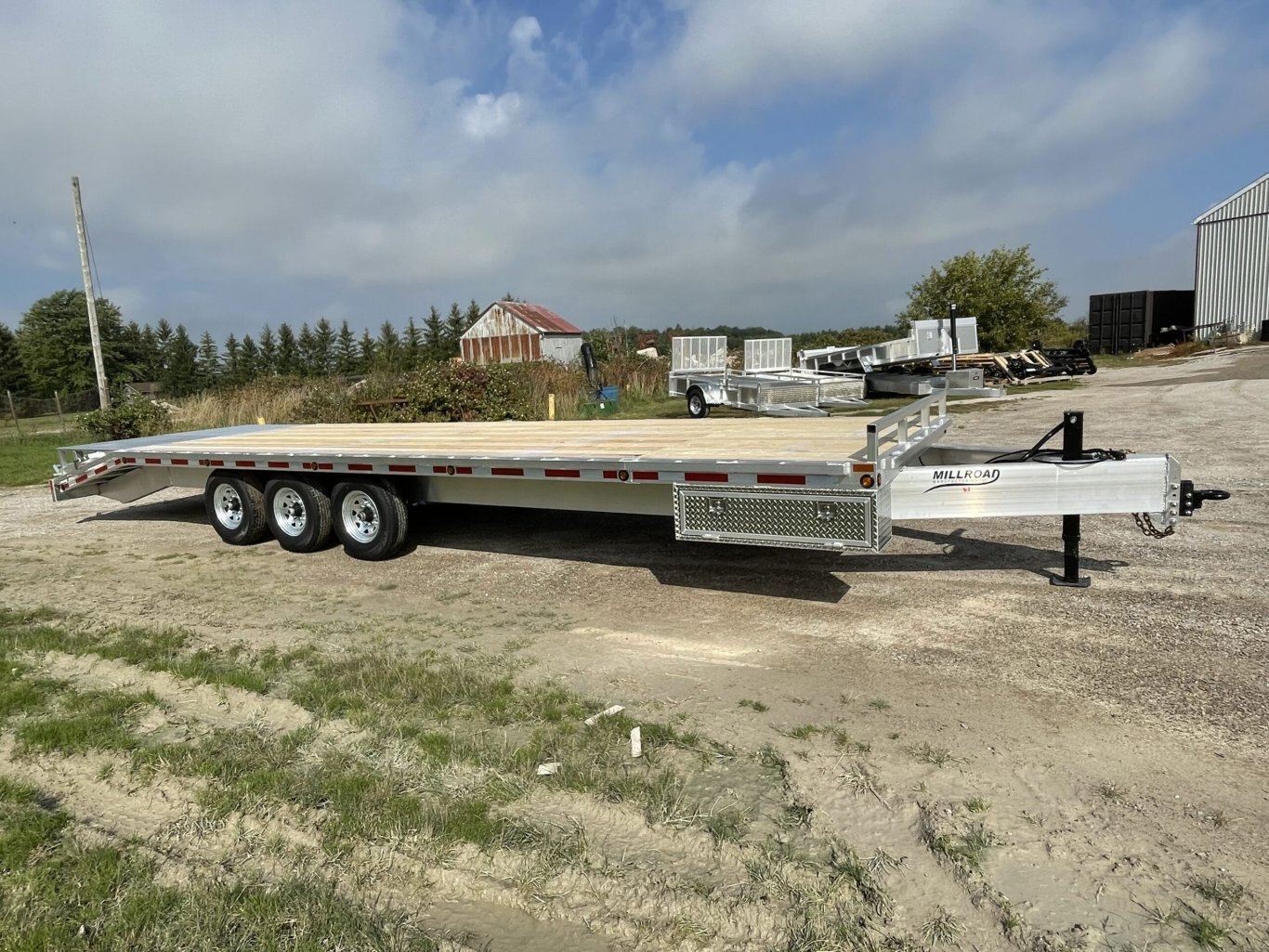 Enjoy premier trailers from an industry leader. Millroad Manufacturing is a leader in aluminum trailer manufacturing in Canada. Whether you need a standard deckover or a custom option, our team manufacturers trailers to outlast the competition and tackle your project. From lightweight, durable aluminum to shrink-wrapped wiring and reliable LED lighting, we go over every detail to craft a trailer that stands up to demanding situations. If you have any questions about operating your trailer or designing a custom option, reach out to our friendly dealerships to get the answers you need.