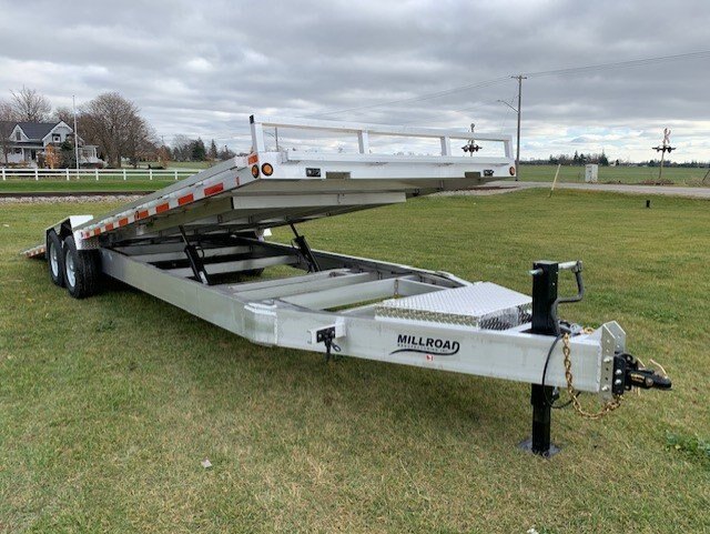 Sometimes you need to load cargo onto a trailer and the ramps are impractical or just won’t work. In these cases, a tilt trailer from Millroad Manufacturing may be the solution. Tilt trailers have powered decks that can tilt down to help with loading cargo. This can make a major difference if you need to carry something like a lawnmower or light construction equipment that would be challenging to line up correctly on the ramps. With the tilt trailer all you need to do is move the trailer bed down, load your cargo, return the trailer to its level position and tie down the cargo. Then, you are ready to go. No fussing around with heavy ramps.