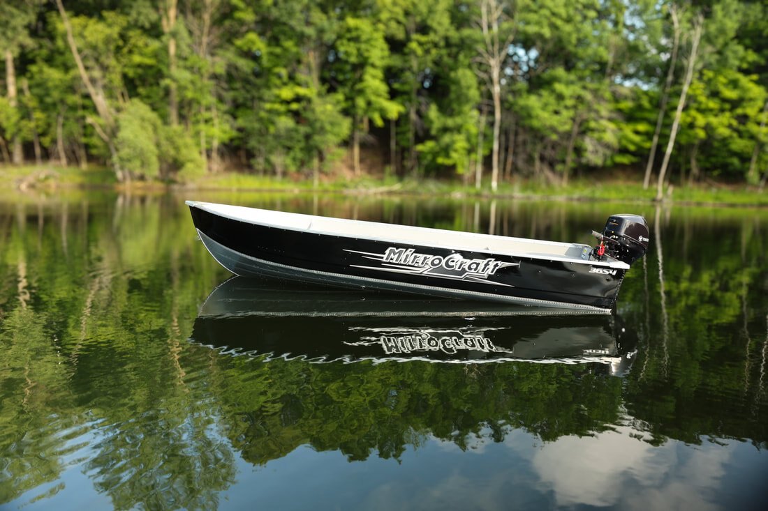 ​Function is what the all aluminum MirroCraft Utility V boat series is all about. They are built as tough and rugged as can be to stand up to the rigors of years of hard use. Popular with boat camps and resorts these utility boats are very low maintenance. Cross ribs spaced every 10" and a strong composite transom are standard features.  Add these with extra bracing along with rigid tank seats, insure a very strong and safe hull. All interiors are finished in a non-glare, non-slip finish and all utility fish models feature transom carry handles. Utility V boat models range from 12'-16' and these boats have max horsepower ratings that range from 10 to 25 HP.