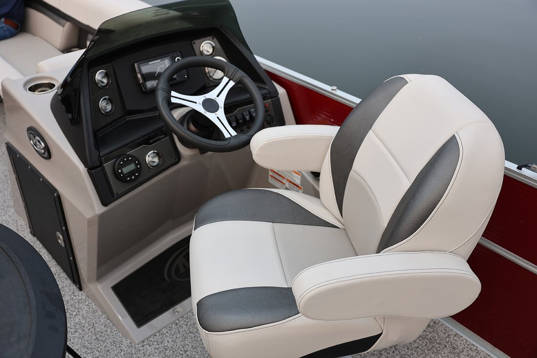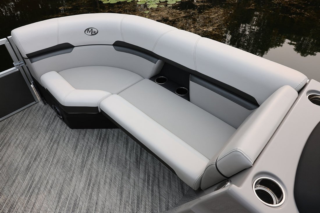We have designed the perfect pontoon for the families that love to fish and cruise. These luxury crossover fishing and cruising models come standard with premium fish seats in the back or front, along with a livewell and rod holders. Rear entry with asiago vinyl, bluetooth stereo and comfortable helm chair are also standard features in these party barges.