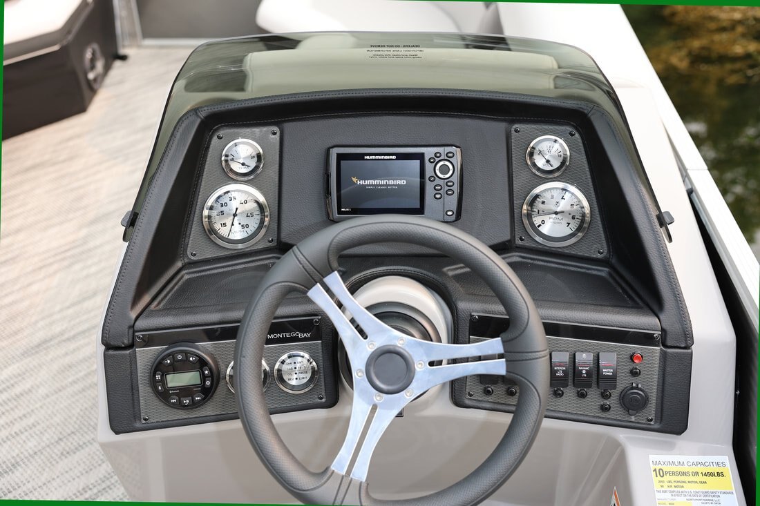 We have designed the perfect pontoon for the families that love to fish and cruise. These luxury crossover fishing and cruising models come standard with premium fish seats in the back or front, along with a livewell and rod holders. Rear entry with asiago vinyl, bluetooth stereo and comfortable helm chair are also standard features in these party barges. *All of our custom built luxury pontoon boats are built in Gillett, WI, USA |