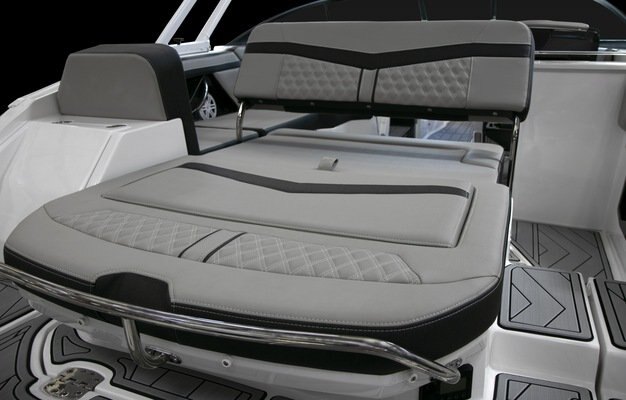 | Aft L-Lounge w/Fiberglass Bases, Sun Island Feature, Stainless Steel Stern Rail | |