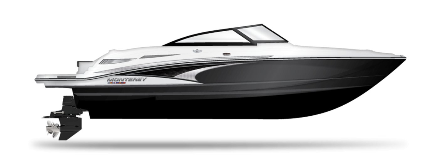 Nimble and Sporty best describes the Monterey M4. Featuring a standard wetbar sized just right for preparing a drink, or a quick snack, spacious seating, and generous dedicated storage areas, the M4 is ahead of the curve. Additional standard features include a stainless steel telescopic boarding ladder for easy access in an out of the water, a small head compartment which is located behind the port side dash, and a fusion satellite ready stereo.