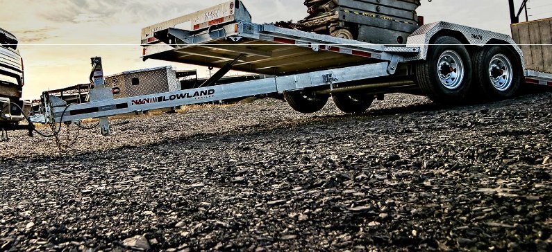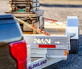 4-Inch galvanized drop axles. The low-profile Lowland trailer (10K, 14K) comes standard with 4-inch drop axles, making it easier to load small construction machinery. Because it has no ramp, it’s easier to use in confined spaces. |