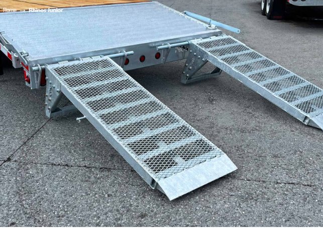 Beaver tail with standard ramps The Rhinos Junior trailer (14K, 16K, 20K, 21K) is equipped with a 4-foot rear unloader mounted with 5-foot vertical grid ramps with stabiliser leg on all types of terrain. |