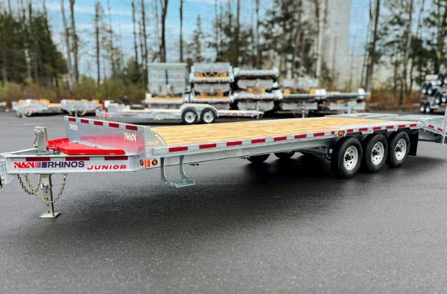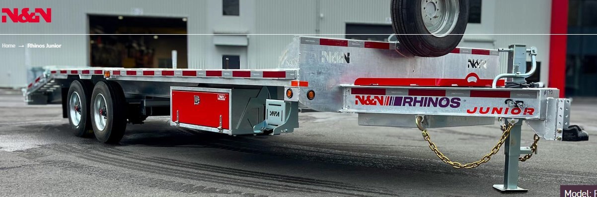 Compact and light The Rhinos Junior trailer (14K, 16K, 20K, 21K) is supported by a robust steel frame and 8‑inch H‑beams for guaranteed ruggedness while remaining lightweight. The Rhinos Junior trailer, unique to N&N Trailers, sets itself apart on the market. |