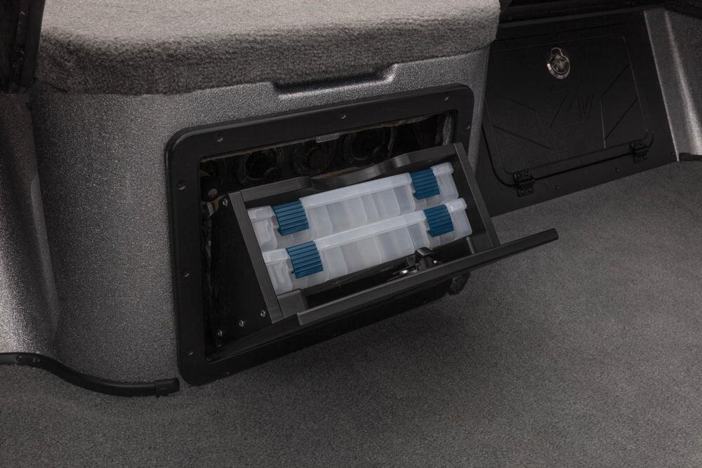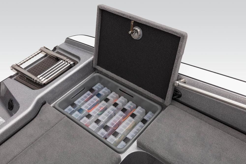 - 2 lift-out, molded aft storage boxes that will each accept seven 3700 tackle trays
