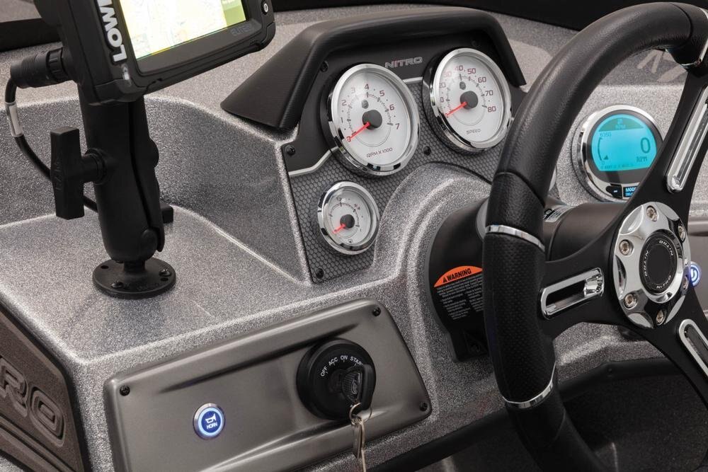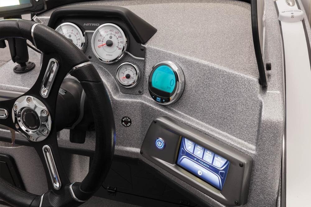 - Touchscreen switch panel w/1-touch boat controls including First Fish, Nite Mode, master power, trim, lighting, bilge, livewells & more