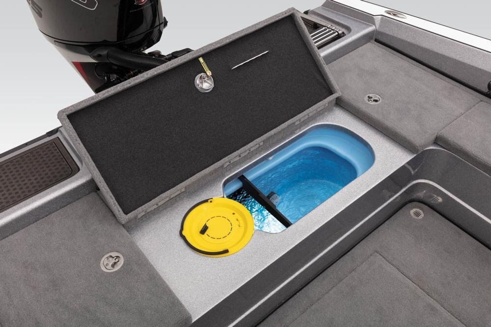 - Aft 26-gal. (98.42 L) insulated GUARDIAN™, anti-slosh & rotomolded livewell w/removable divider, bait bucket & rounded corners