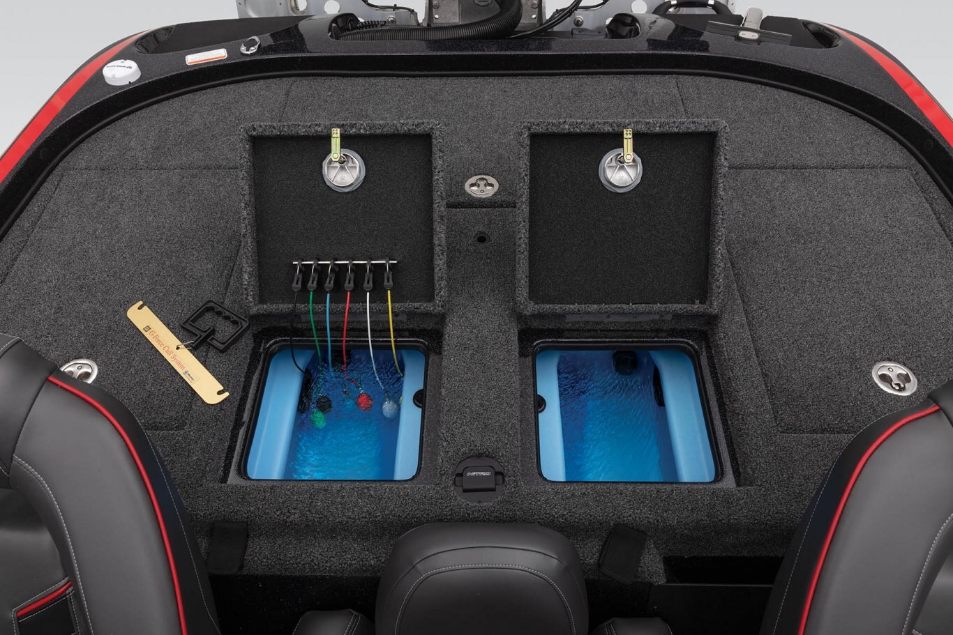 2 aft 19-gal. (71.92 L) insulated GUARDIAN™ livewells w/digital timers 750 GPH (2,839.06 LPH) livewell recirculation/pump-out system 500 GPH (1,892.71 LPH) aerator/fill pump Oxygen generator in each livewell Dual remote drain controls Rotomolded w/rounded corners