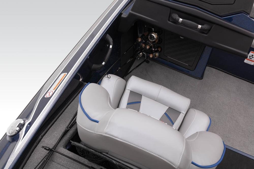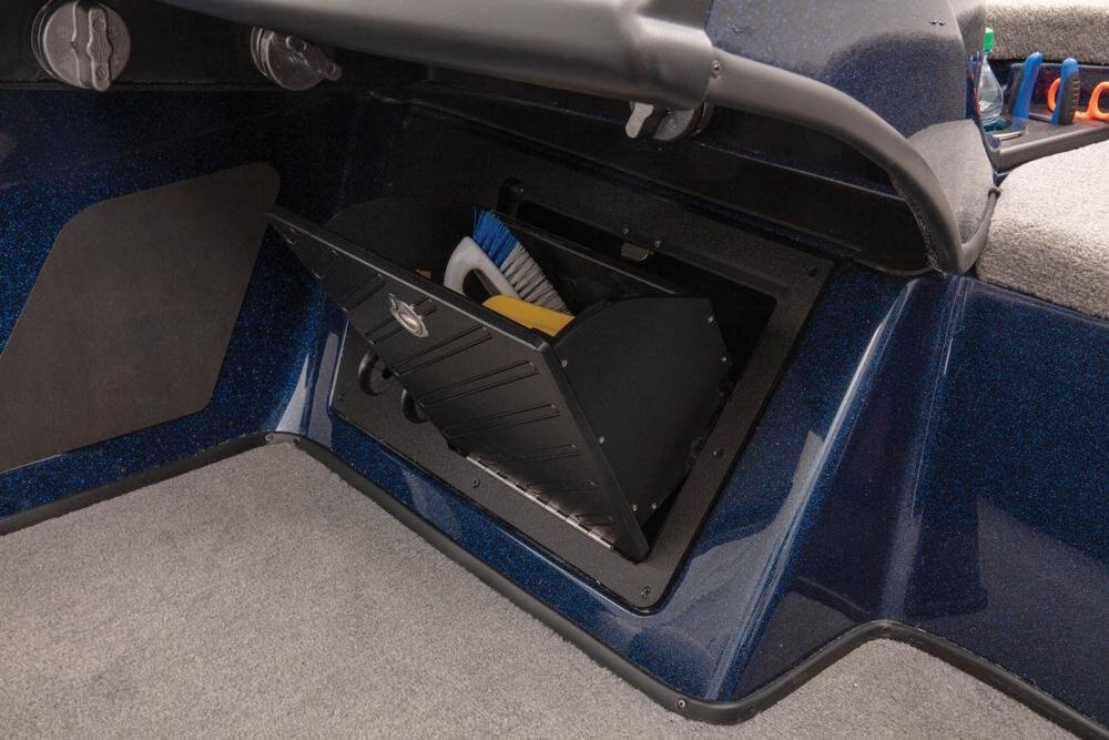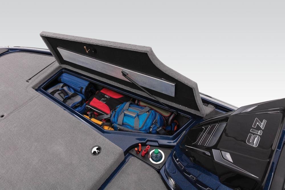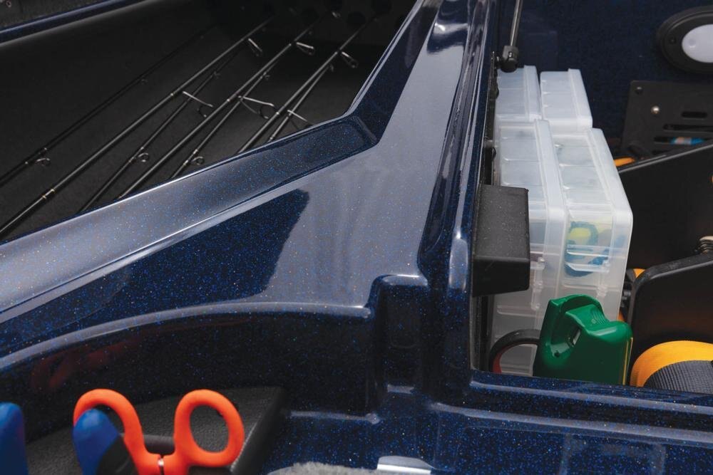34-sq.-ft. (3.2-sq.-m) bow deck for casting mobility w/lots of storage Bike seat w/pedestal Folding fishing seat w/composite frame Z-CORE™ seating system w/Force Flex suspension & contoured, rotomolded frame for driver & passenger seats Low driver & passenger flat seat mounting Bow port & starboard rod hold-down straps Molded-in drainage channels around bow storage compartments Oversized, lockable bow port & starboard rod lockers w/lift assists for rods up to 8' (2.44 m) Oversized lockable bow center storage locker Step to bow deck w/62-qt. (58.67 L) insulated cooler & removable trash receptacle Partner rod ramp w/rod handle organizer & hold-down strap Footrest w/non-skid mat under console(s) NEW integrated step to aft deck w/lockable storage & removable tub Designated net storage behind seating Built-in tournament ruler & holder 2 lift-out, molded aft storage boxes that will each accept seven 3700 tackle trays Molded utility rigging compartment for easy access to batteries & pumps & easy cleanup Lift-out tool/rope storage tray in rigging compartment Insulated aluminum lids w/welded corners 16-oz. (.45 kg) plush, marine-grade cut pile carpet on decks & floor Lockable latches