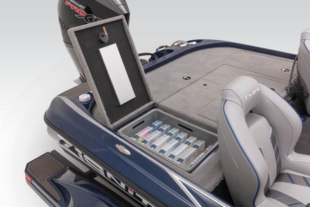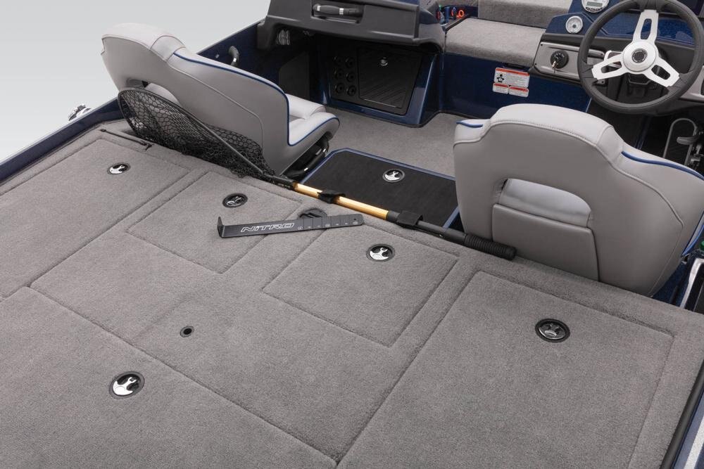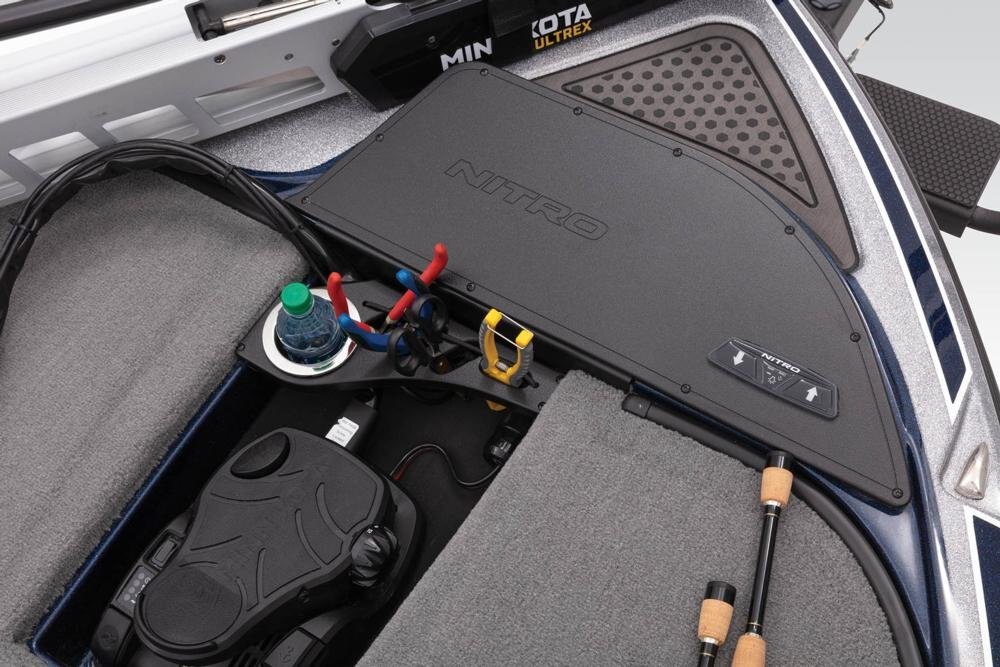 NITRO VORTEX TECHNOLOGY™ (NVT™) hull w/RAPID PLANING SYSTEM™ (RPS™) & NEW improved hull performance Lowrance® HOOK Reveal 5C flush-mounted fishfinder Minn Kota® Maxxum® 24V, 70-lb. (31.75 kg) thrust, 42" (1.07 m) shaft, foot-control trolling motor Bike seat & folding fishing seat Z-CORE™ seating system w/Force Flex suspension & contoured, rotomolded frame for driver & passenger seats Low driver & passenger flat seat mounting 100% composite deck core w/superior thermal stability & strength-to-weight ratio Low-profile gunnels to maximize deck size & for easier casting NEW angled bow panel w/trolling motor receptacle, anchor/light switch, trim switch & capability to flush mount 10" (25.4 cm) fishfinder 34-sq.-ft. (3.2-sq.-m) bow deck w/port & starboard rod lockers w/lift assists for rods up to 8' (2.44 m) & center storage locker Bow port & starboard rod hold-down straps Step to bow deck w/62-qt. (58.67 L) insulated cooler & removable trash receptacle Modular, aerodynamic console design w/expanded leg clearance & large fishfinder surface Console removable acrylic tinted windscreen, 2-tone gelcoat & LED courtesy light Veethree® multifunction instrumentation & waterproof, capacitive touch digital keypad Hydraulic steering w/tilt Footrest w/non-skid mat under console Partner rod ramp w/rod handle organizer & hold-down strap NEW integrated step to aft deck w/lockable storage & removable tub Designated net storage behind seating 2 aft 19-gal. (71.92 L) insulated GUARDIAN™ livewells w/digital timers & NEW starboard lid w/culling bracket 2 lift-out, molded aft storage boxes that will each accept seven 3700 tackle trays NEW 10” (25.4 cm) adjustable jack plate NEW stainless steel reboarding ladder, angled for allowing optional shallow-water anchor 2-bank, 8-amp battery charger w/exterior receptacle Interstate® batteries: 1 cranking & 2 trolling Custom-fit trailer powdercoated w/GALVASHIELD® Impact protection