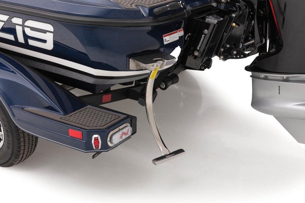 Custom-fit, single-axle NITRO® trailer powdercoated w/GALVASHIELD® Impact corrosion & chip protection for improved durability 7-pin connector 15" (38.1 cm) chrome wheels w/radial tires Surge disc brakes No Touch Vortex hub lubrication system w/6-year, 100,000-mile (1,609.34 km) limited warranty All-welded rectangular GALVASHIELD® frame Space-saving swing-away tongue to reduce storage length Fold-away tongue jack Heavy-duty winch w/nylon strap & bow safety strap Outboard motor support to reduce hull & transom stress while towing Carpeted bunks & fender boards to protect hull Submersible LED lights Safety cables