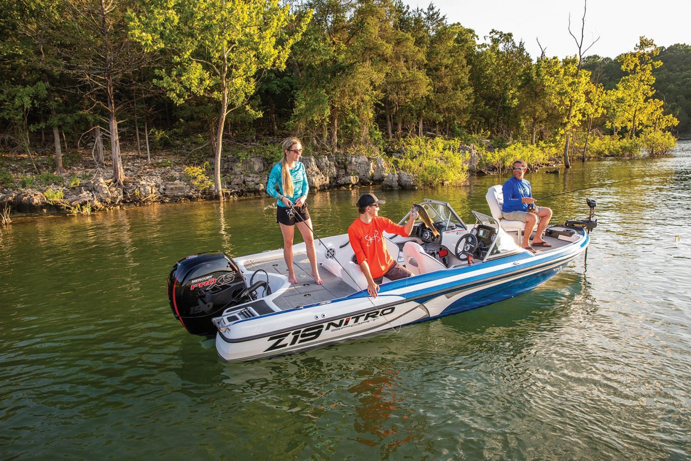 Like every NITRO, the Z19 Sport includes a factory-rigged Mercury® outboard, Minn Kota® trolling motor, new Lowrance® HOOK Reveal 5C fishfinder and custom-matched trailer with GALVASHIELD® Impact protection.